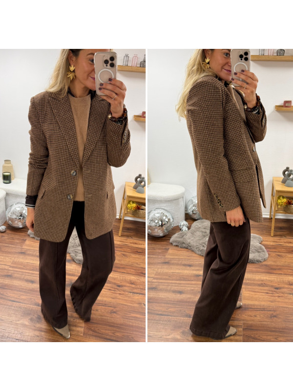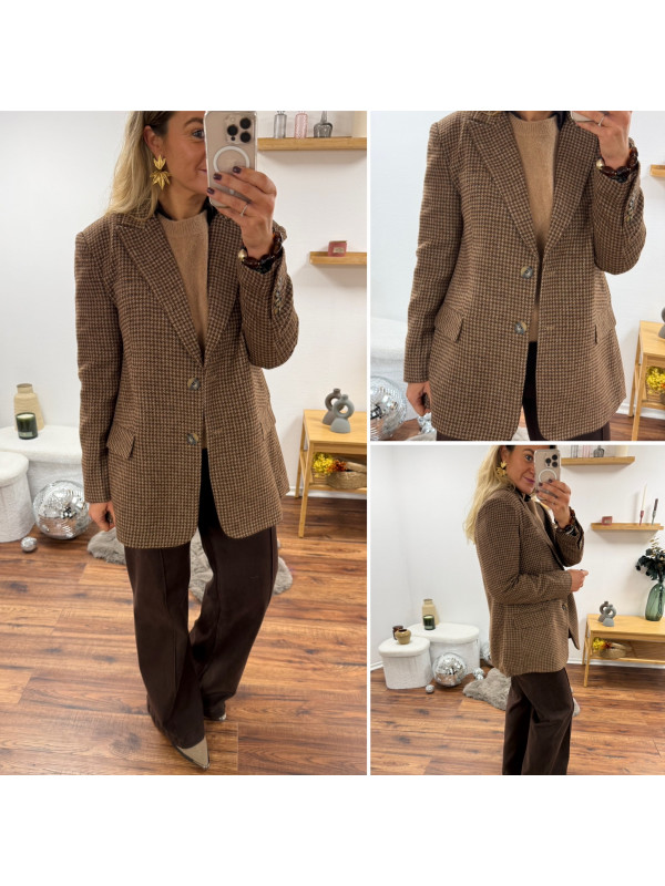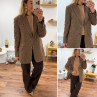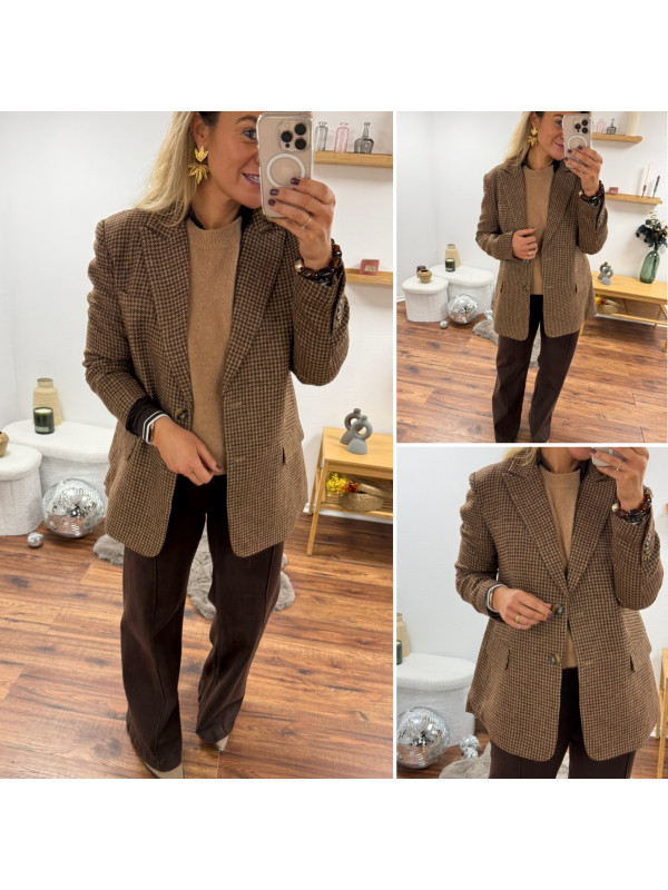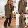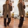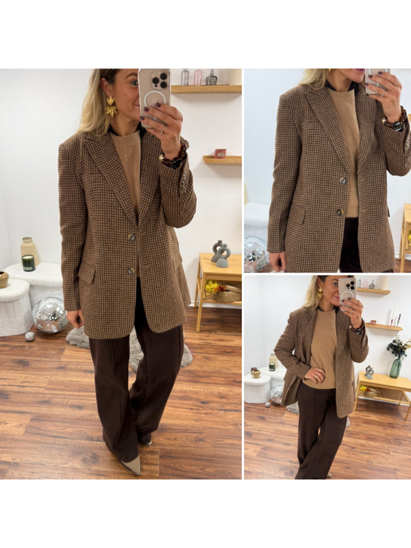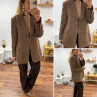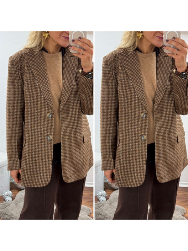 Veste épaisse mi longue à carreaux pied de poule camel et chocolat