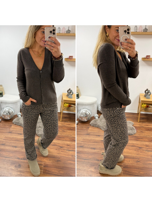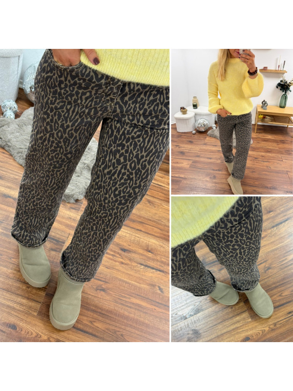 Pantalon motif léopard taupe et noir (du 36 au 46)