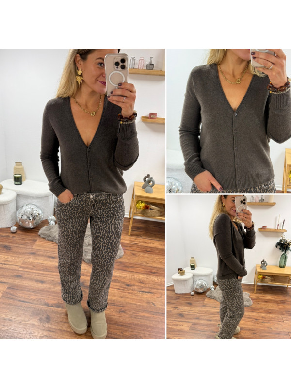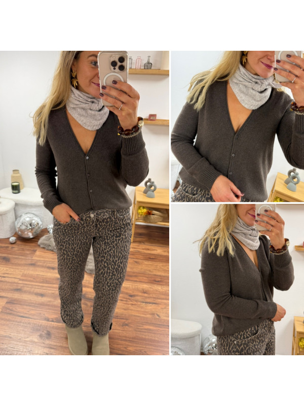 Gilet col V couleur chocolat (du 36 au 46)