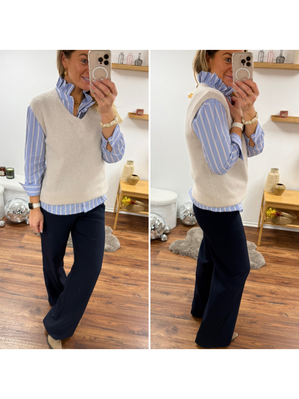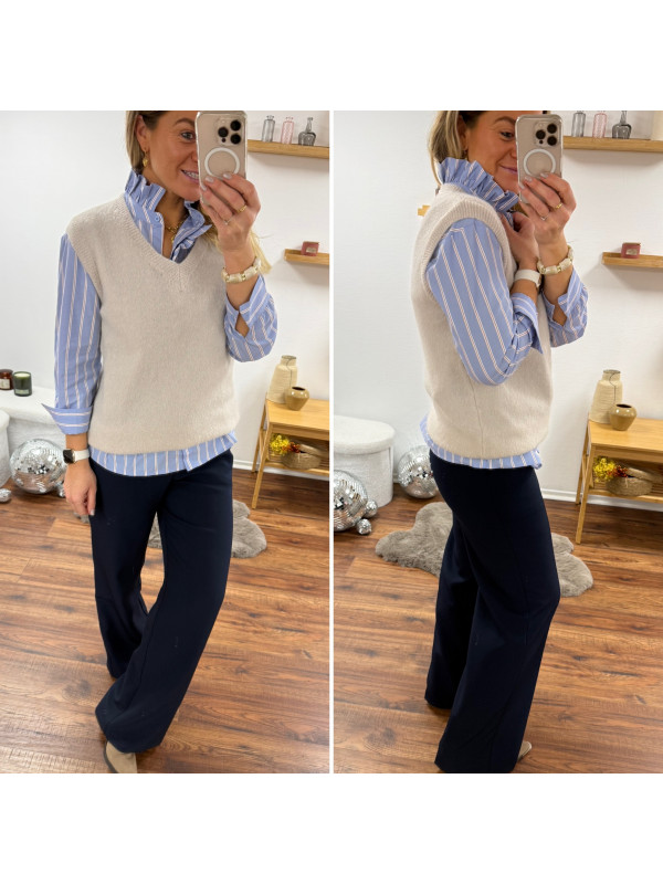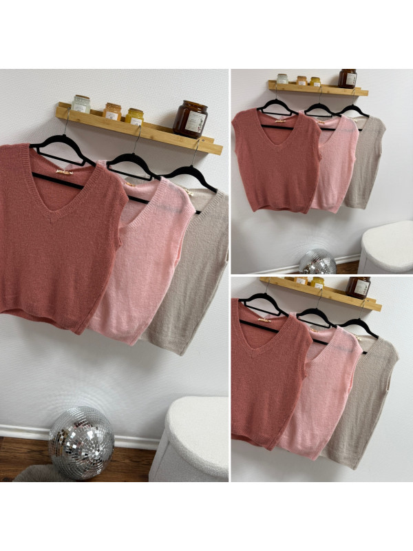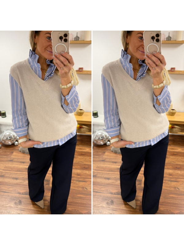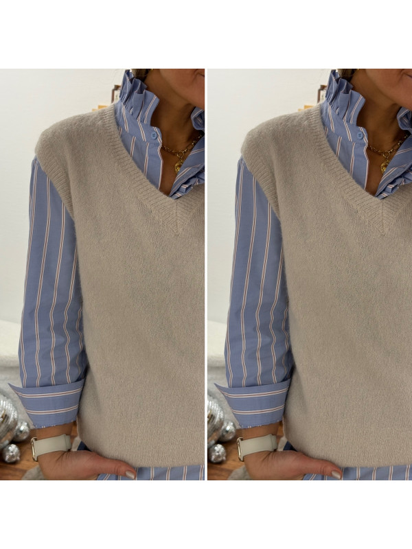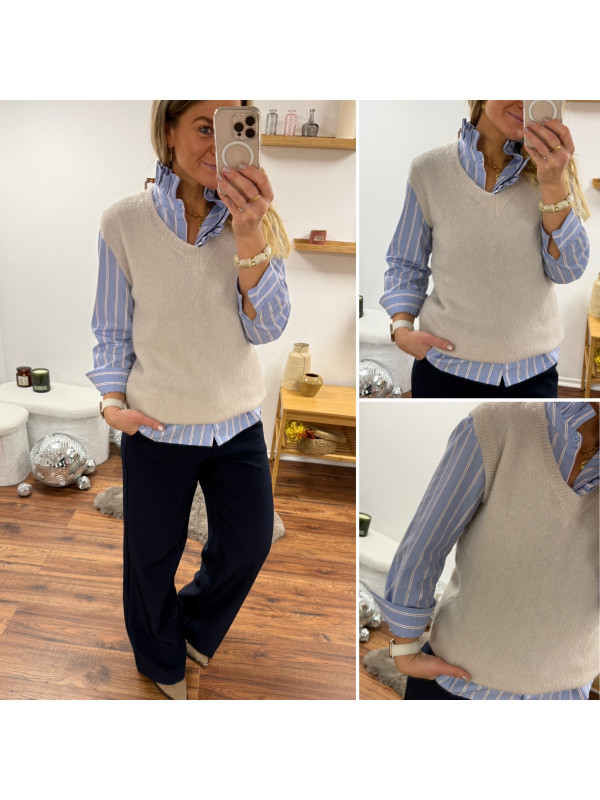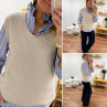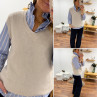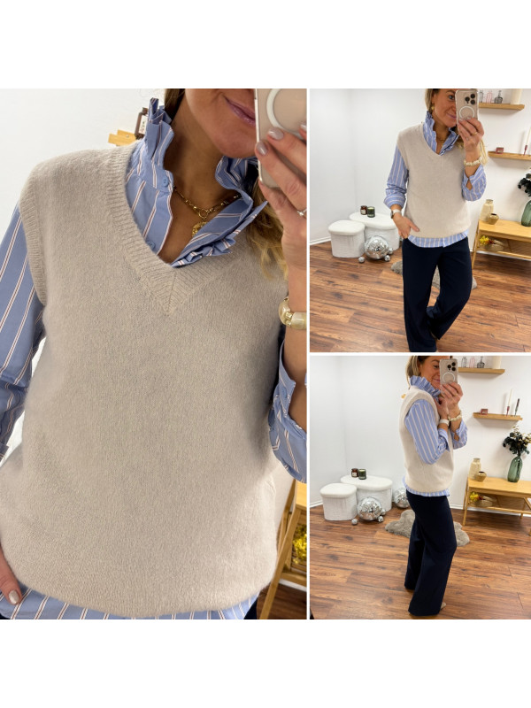 Pull en alpaga sans manches col V beige