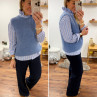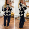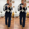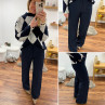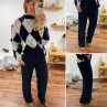 Pull jacquard avec losanges bleu marine et blanc 10% laine, 6%...