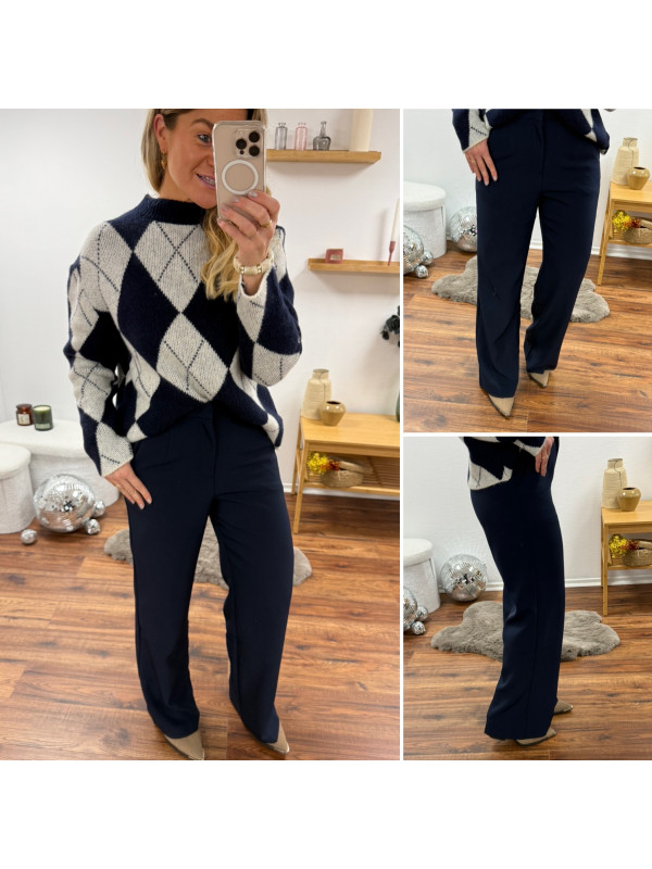 Pantalon fluide droit bleu marine