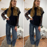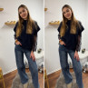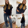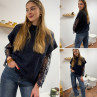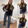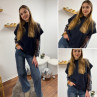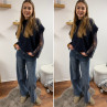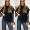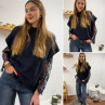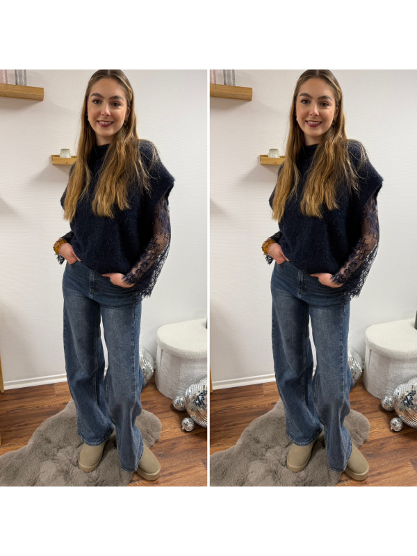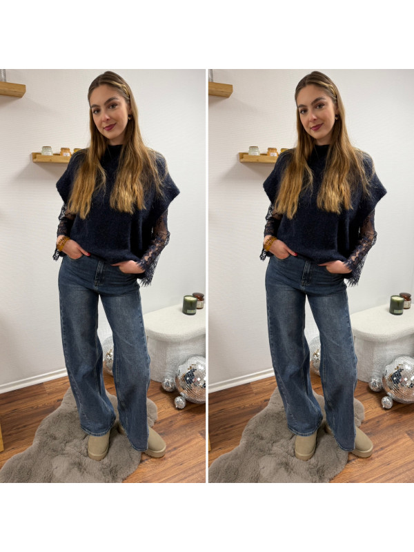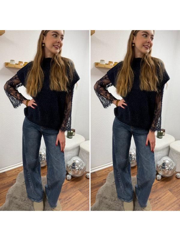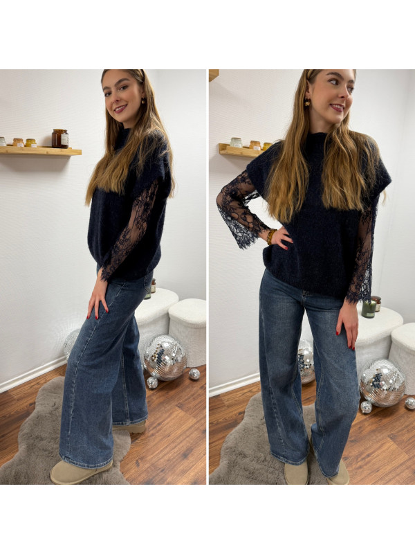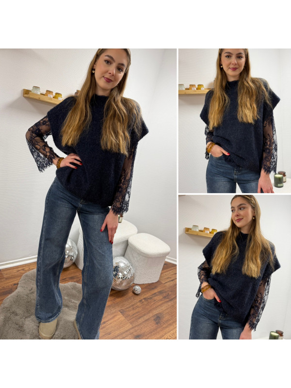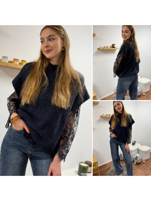 Pull sans manches bleu marine avec manches en dentelle intégrées
