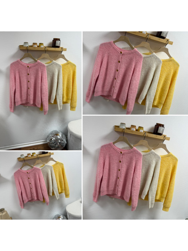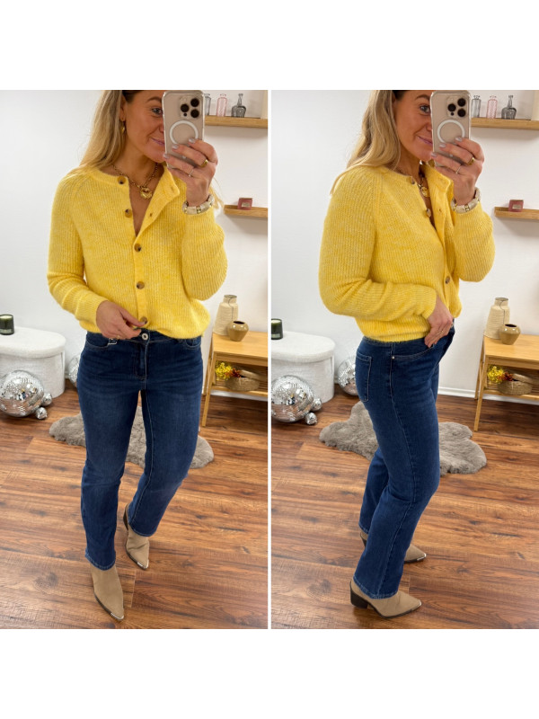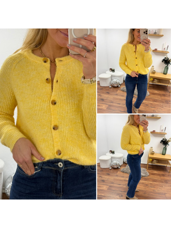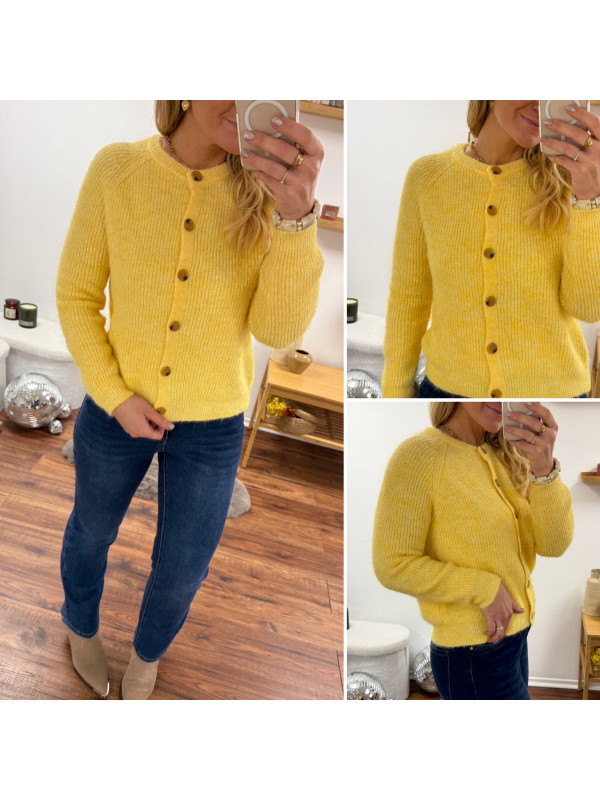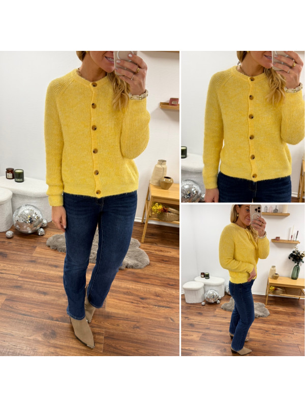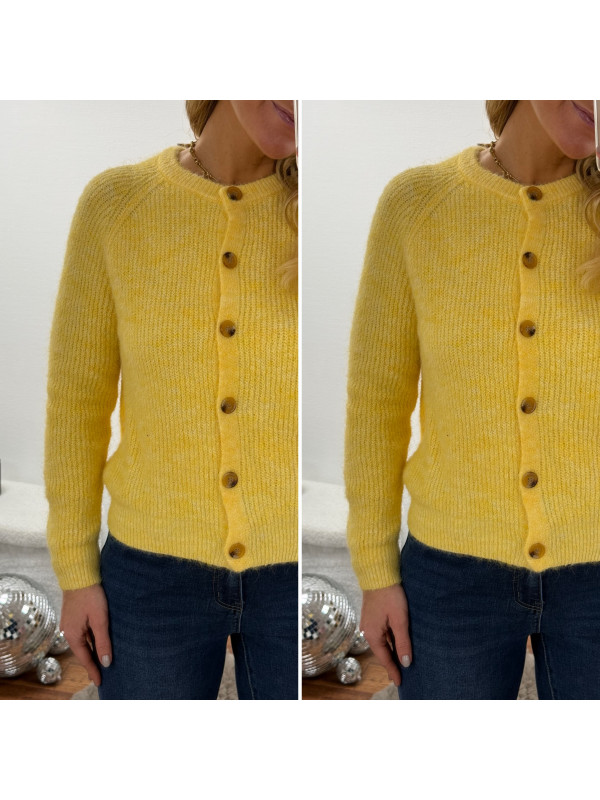 Gilet en maille jaune avec boutons camels