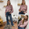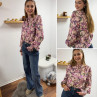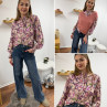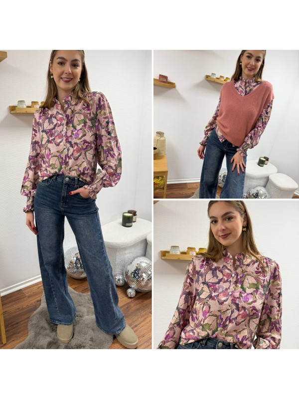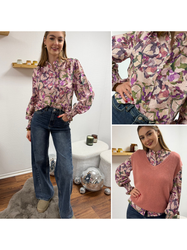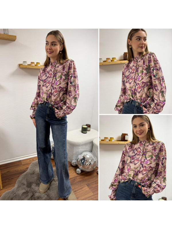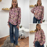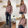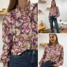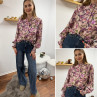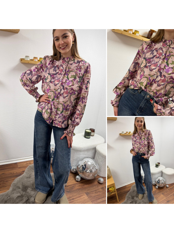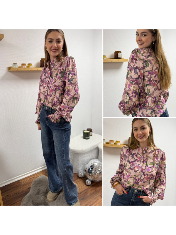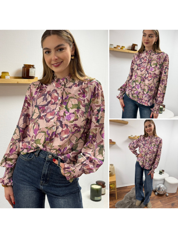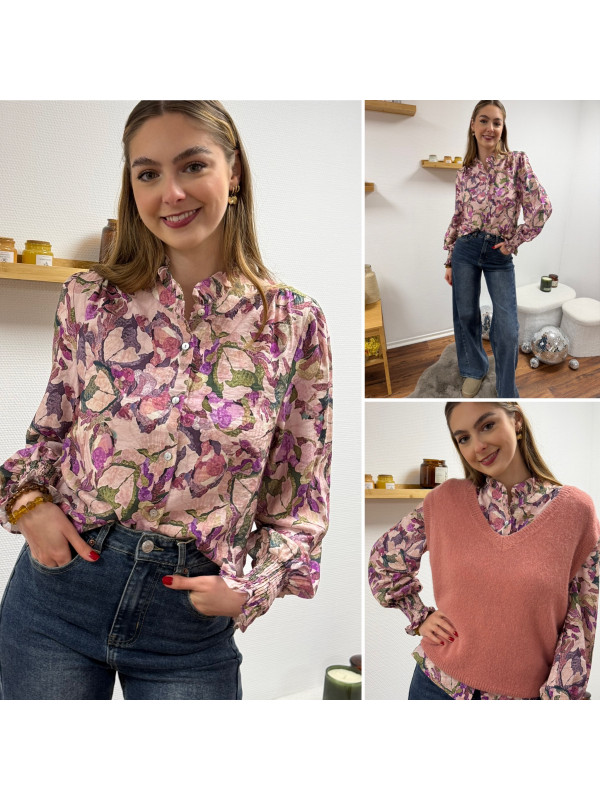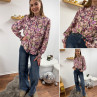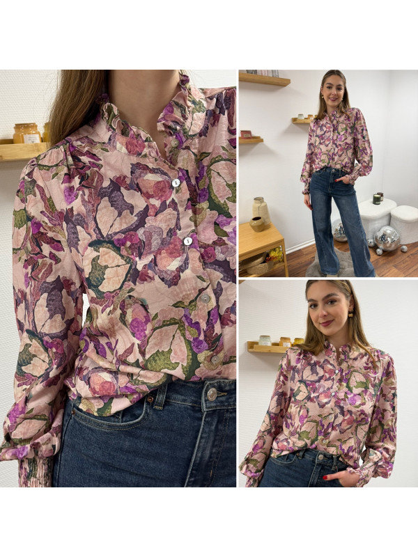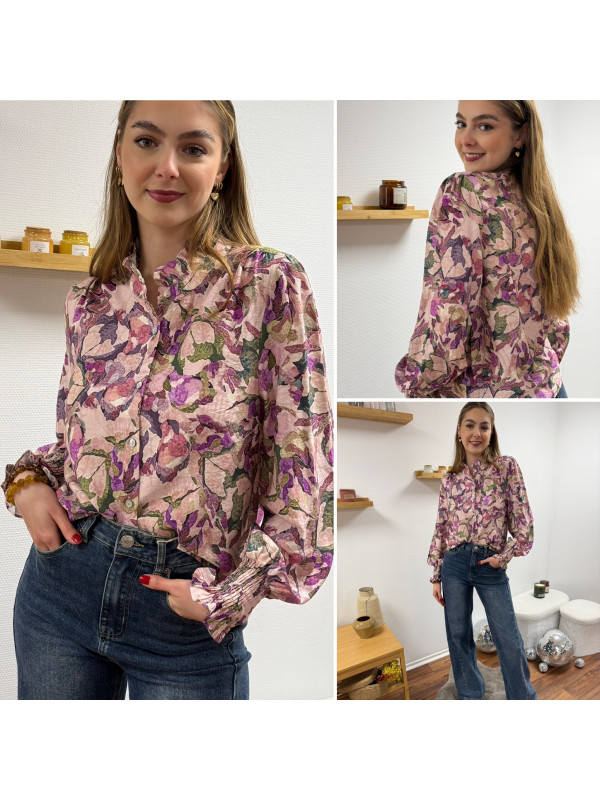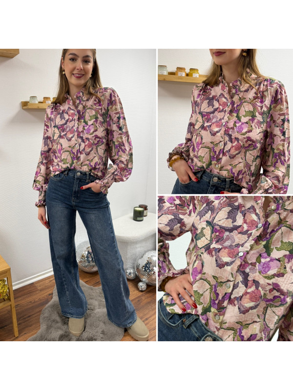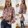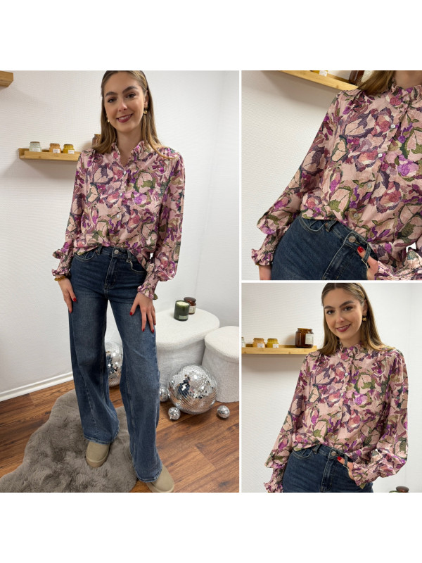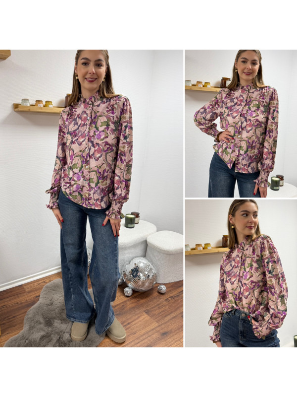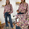 Chemise avec imprimé floral rose,vert et violet et poignets ressérrées