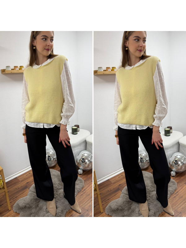 Pull sans manches en alpaga col rond jaune pastel Cet article...