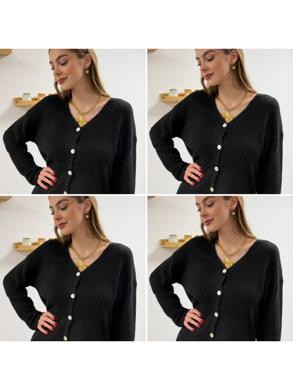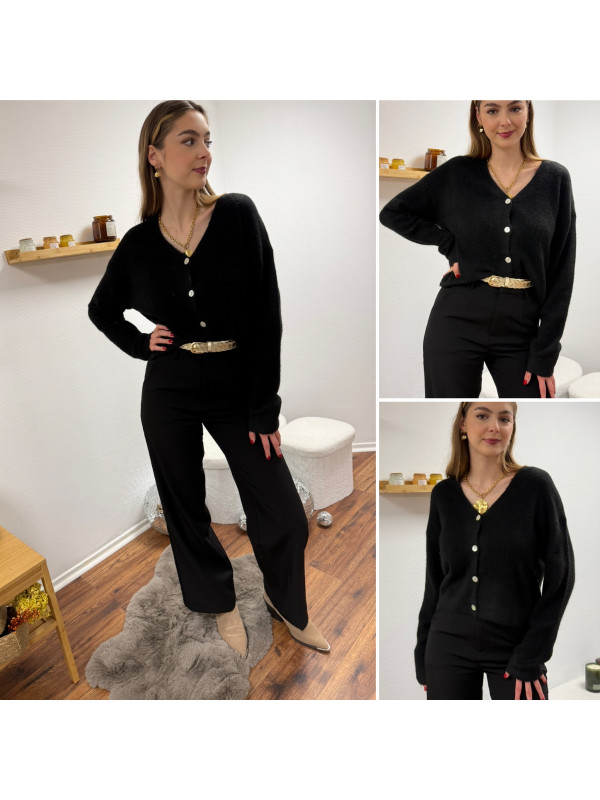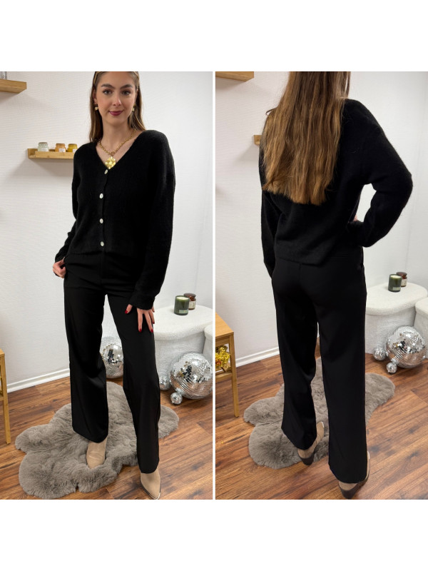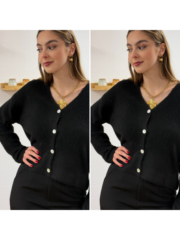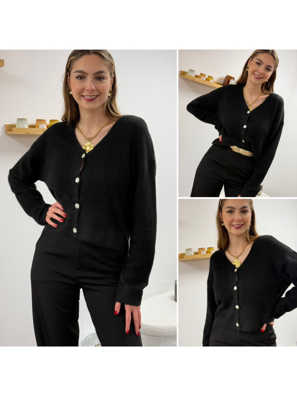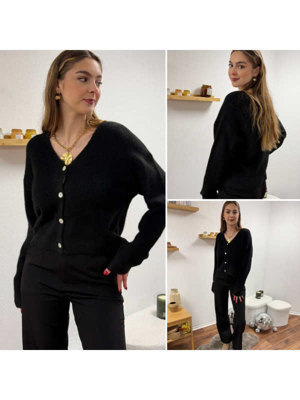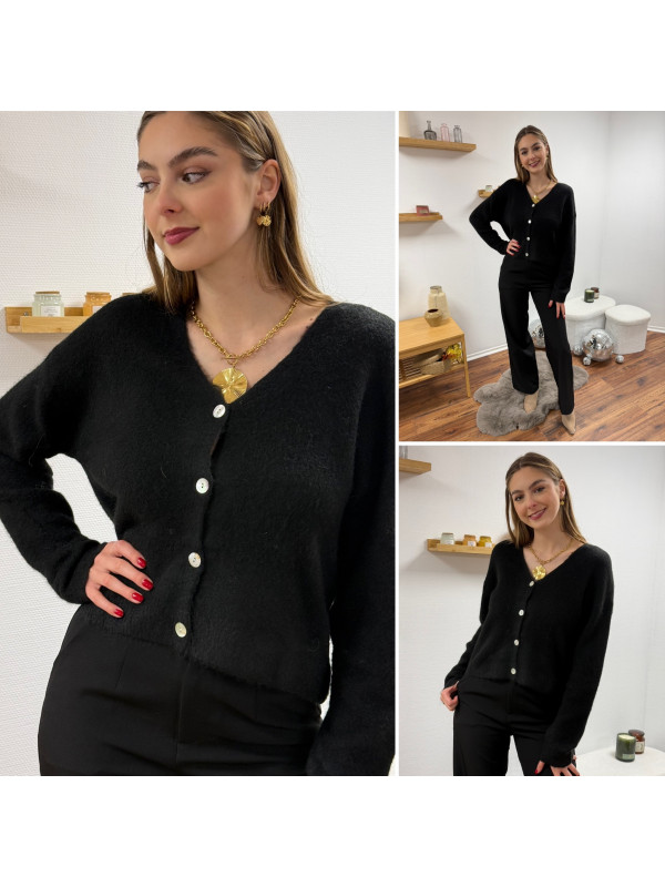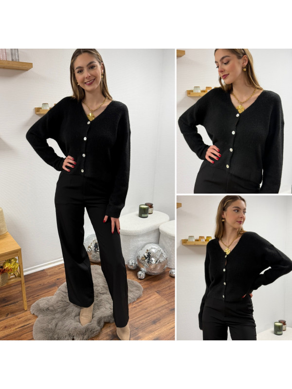 Gilet noir col V avec boutons nacrés