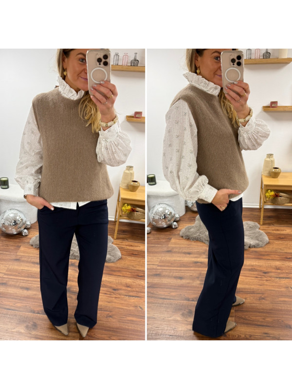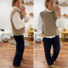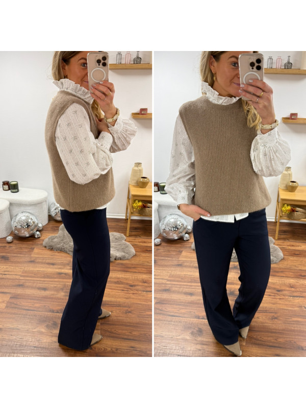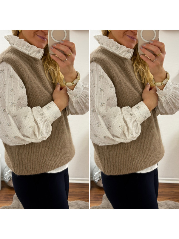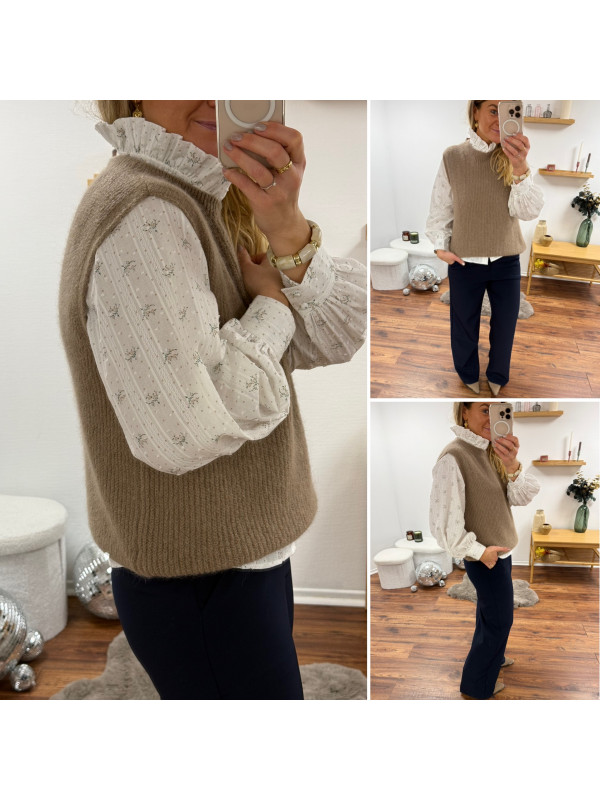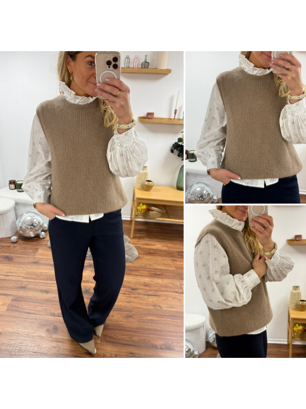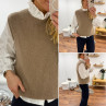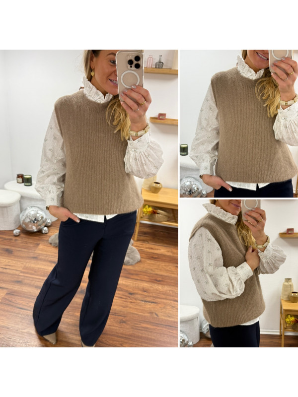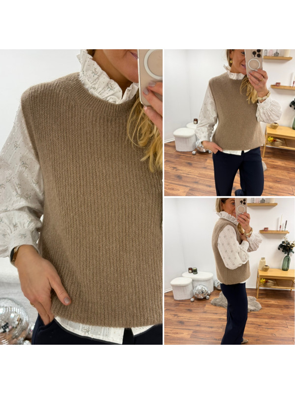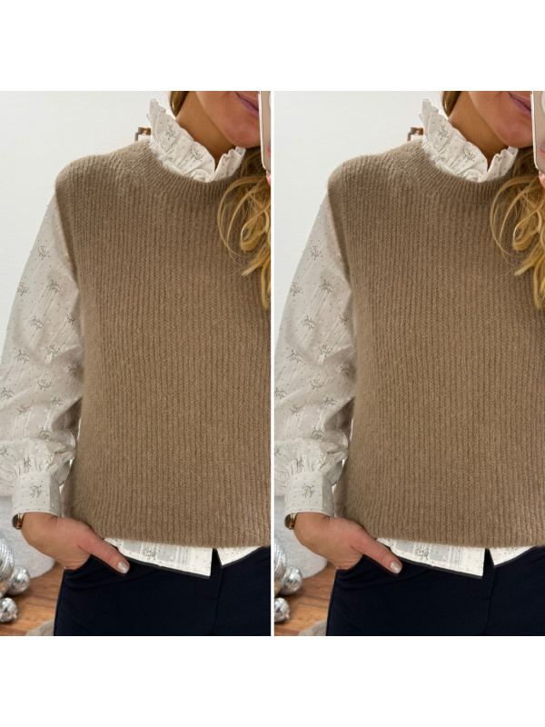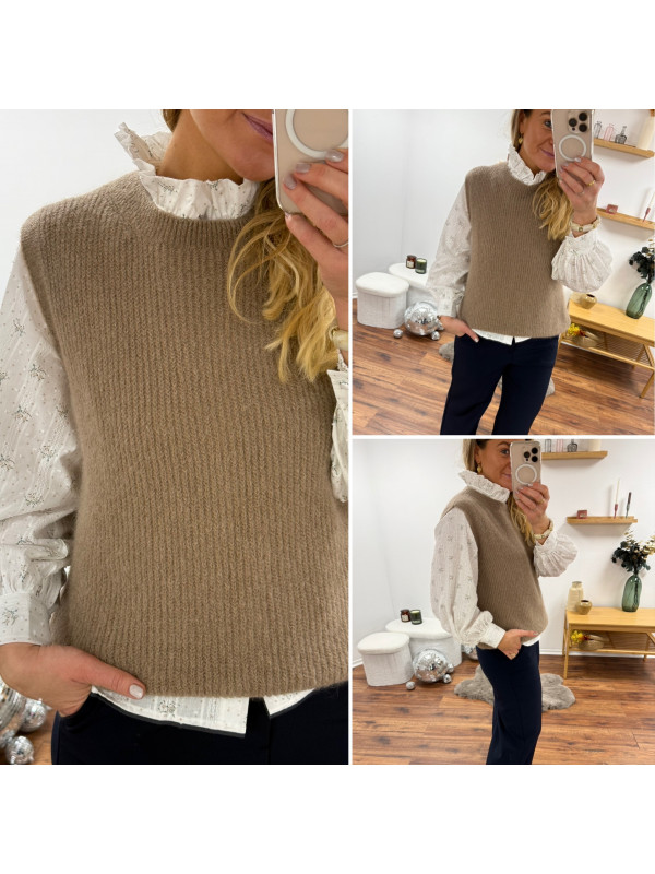 Pull sans manches en alpaga à fines mailles col rond taupe
