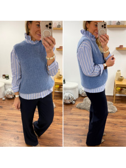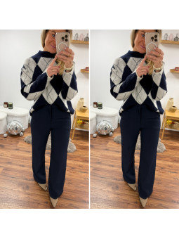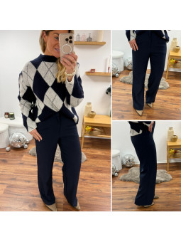 Pantalon fluide droit bleu marine Le S équivaut au 36, le M au...