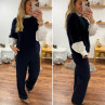 Blouse blanche avec fleurs noires, broderies et col volant Le...
