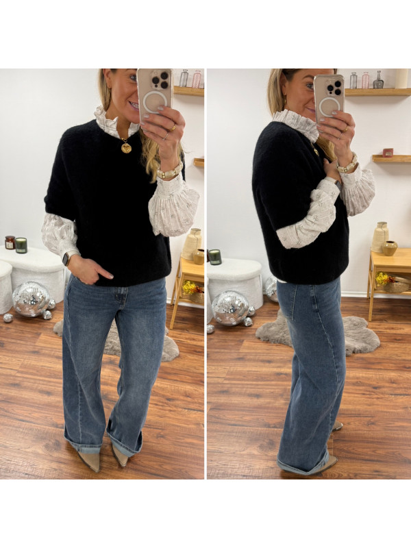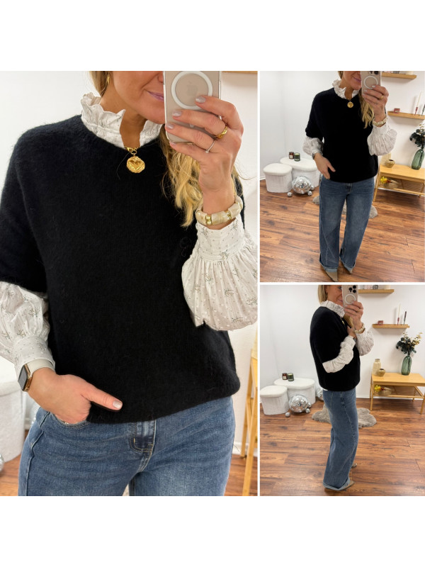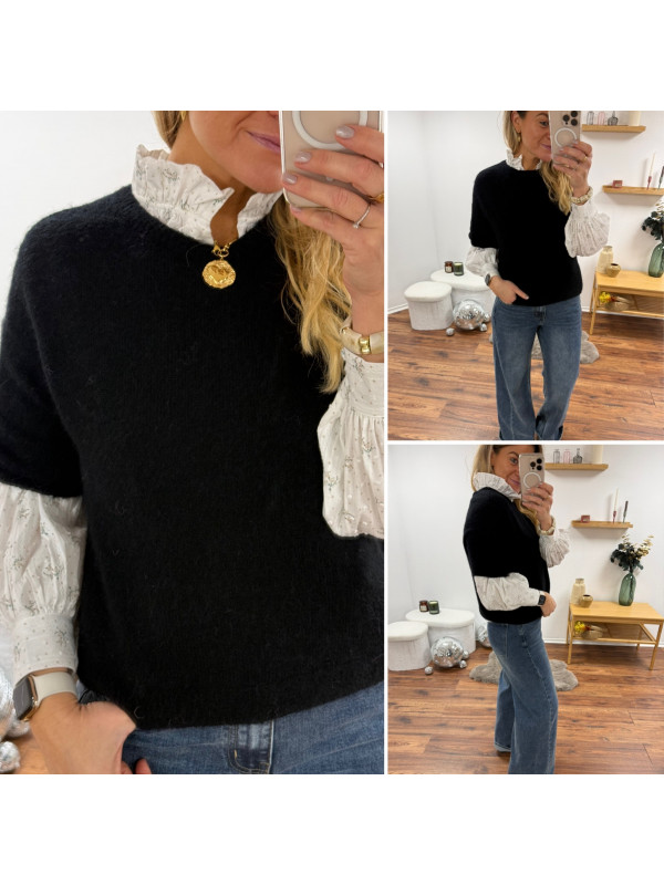 Pull manches courtes en alpaga noir