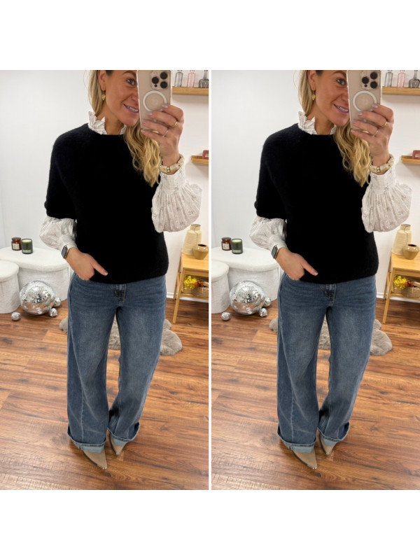 Jean wide leg palazzo avec couture qui tourne sur le devant...