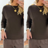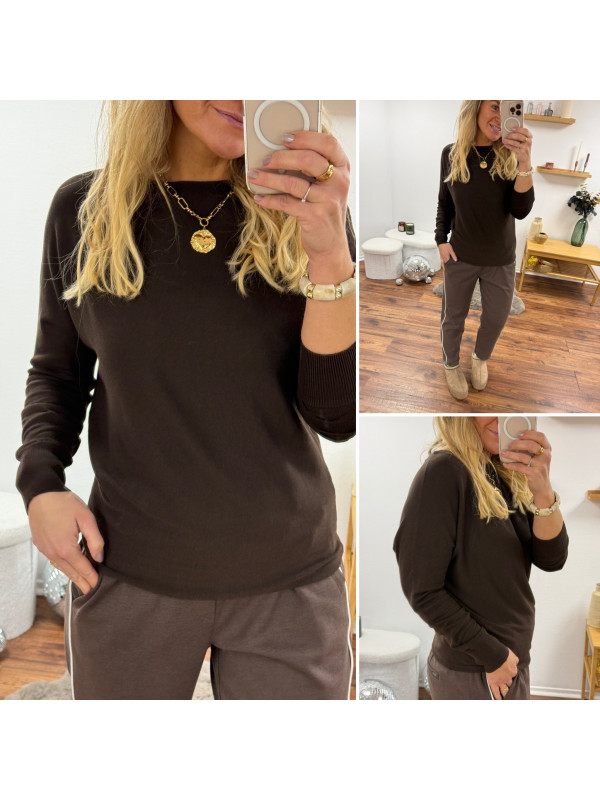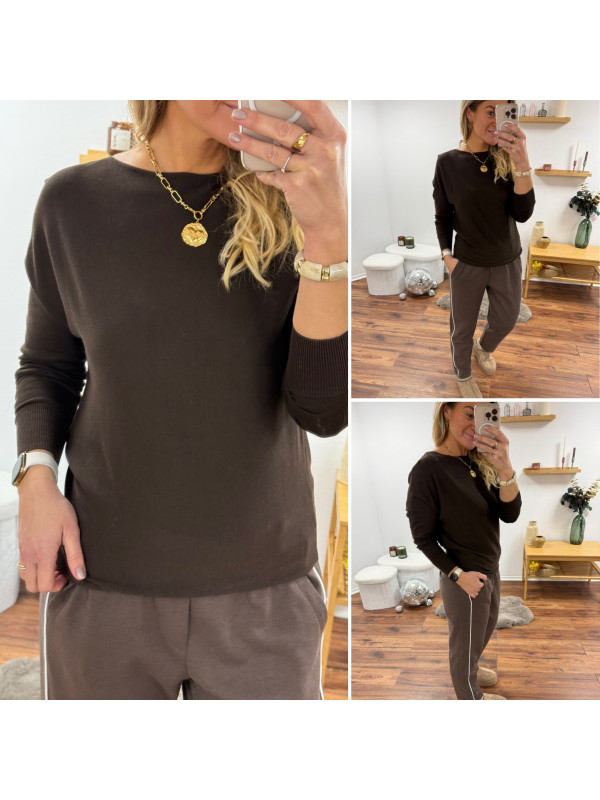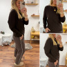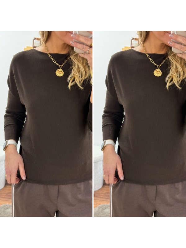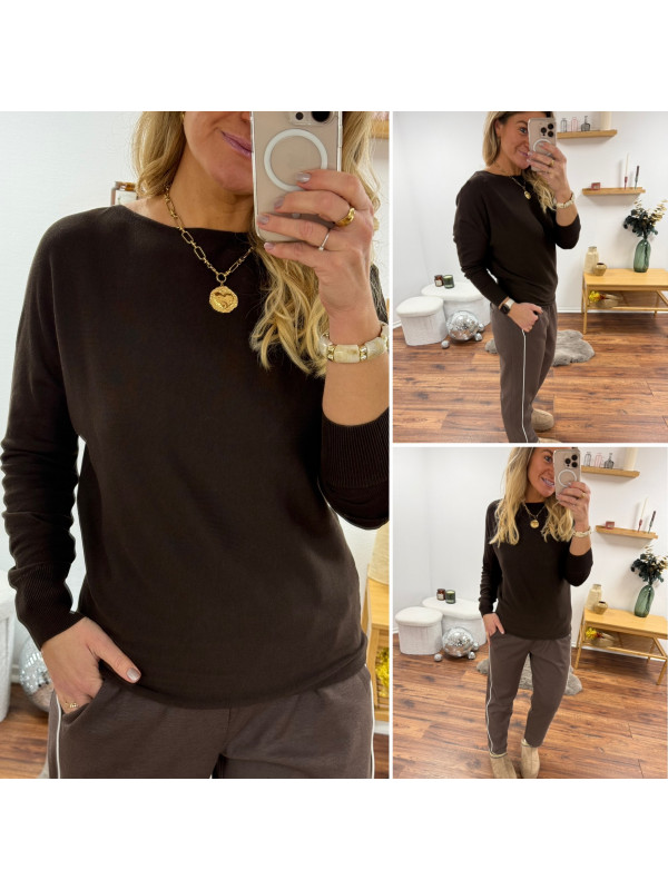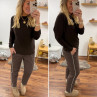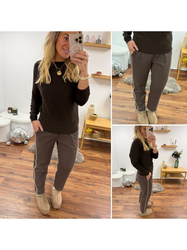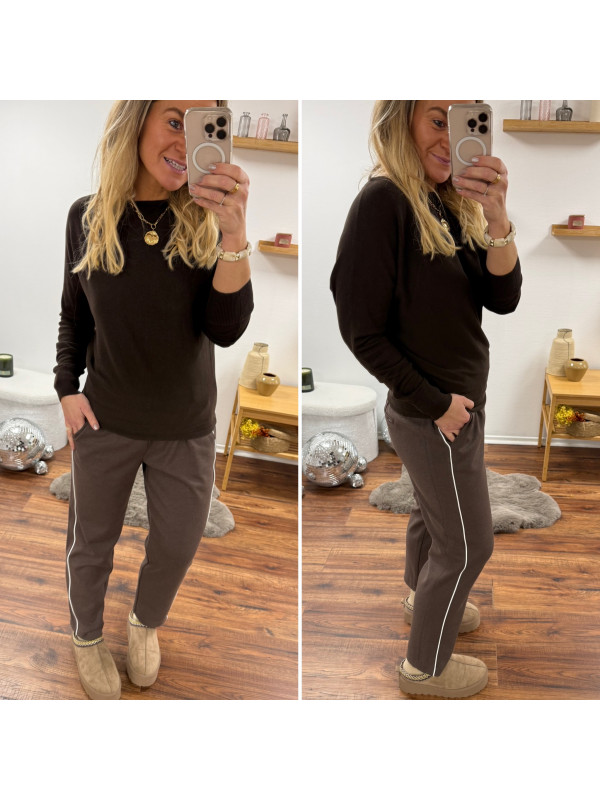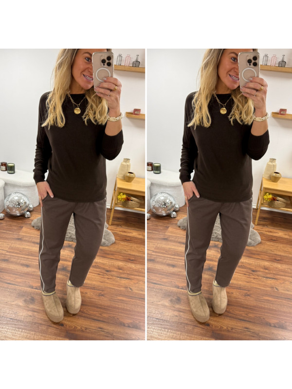 Pantalon chocolat avec bande blanche sur le côté et élastique à la taille (du 36 au 46)
