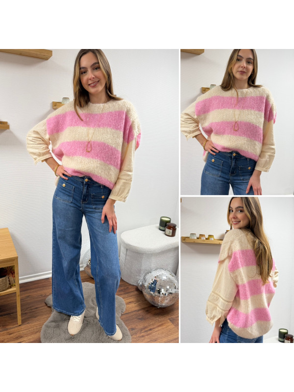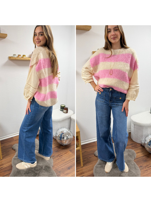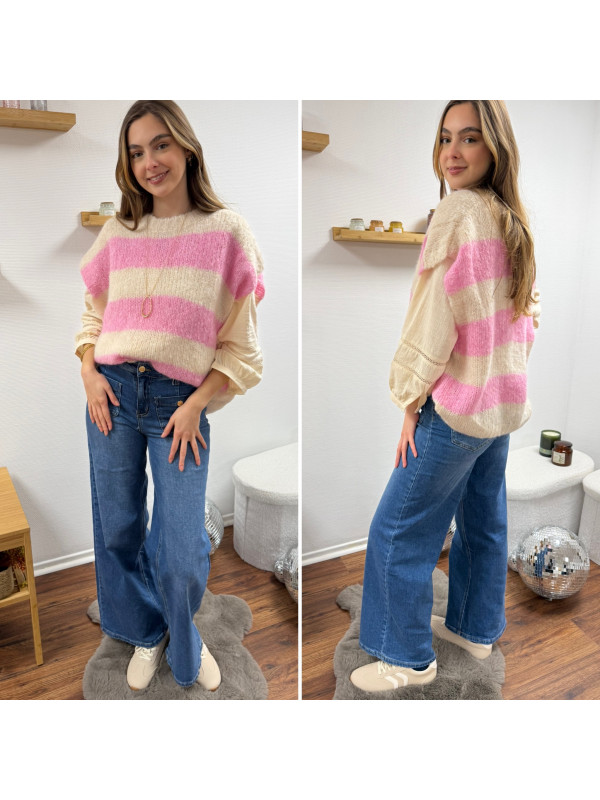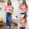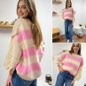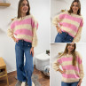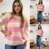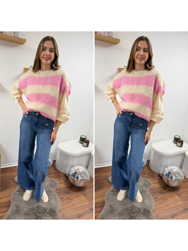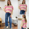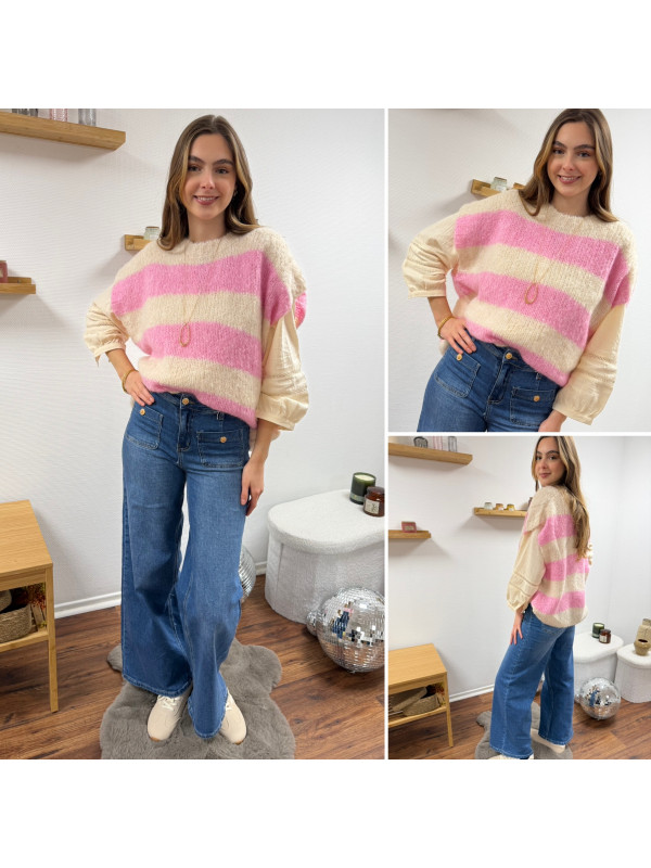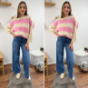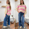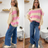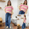Pull sans manches oversize à rayures bleues et écrues Cet...