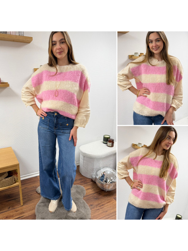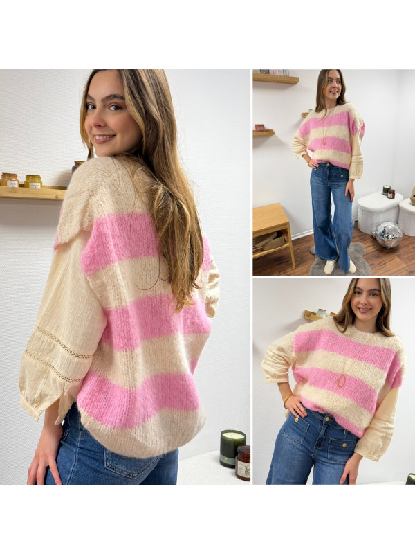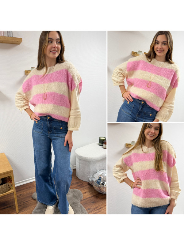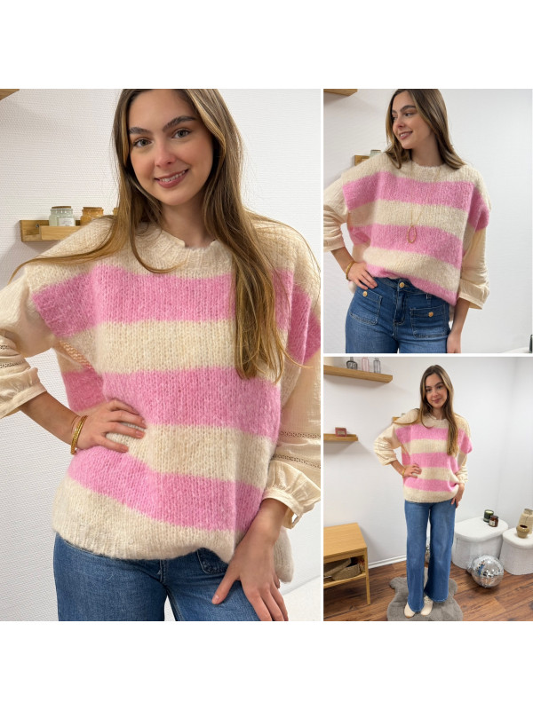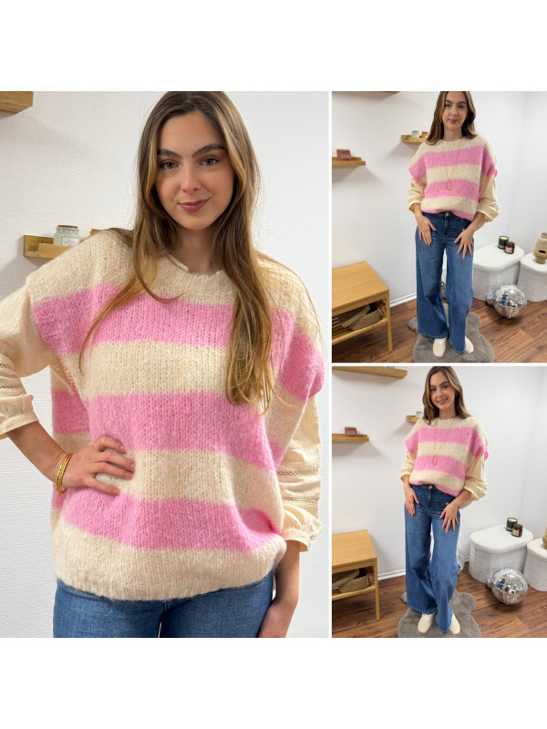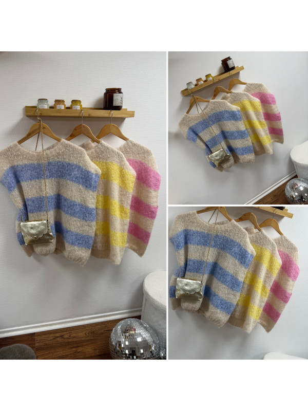 Pull sans manches oversize à rayures jaunes et écrues Cet...
