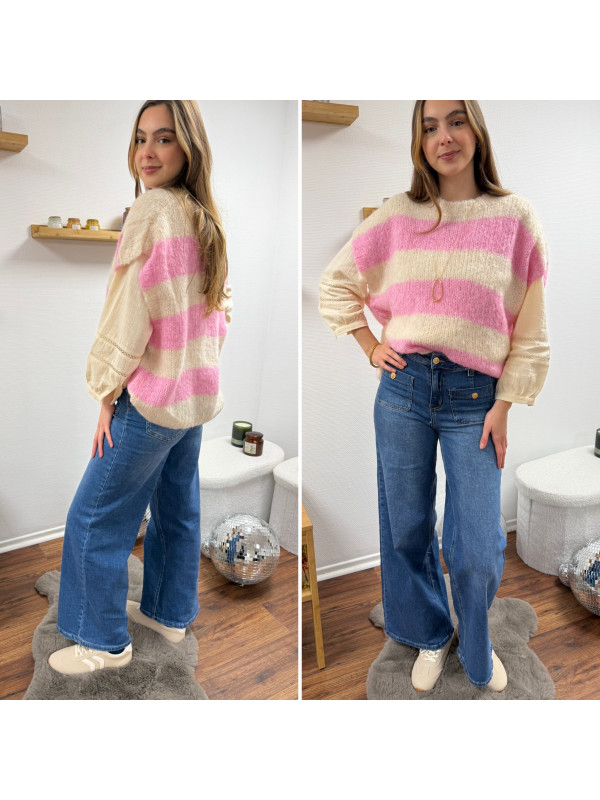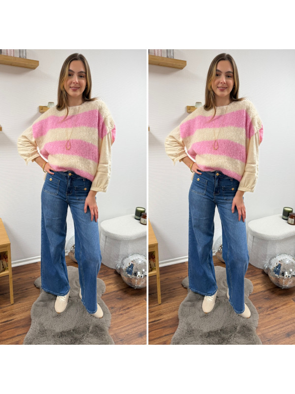 Jean wide leg avec poches plaquées sur le devant et boutons...