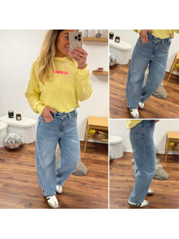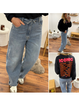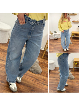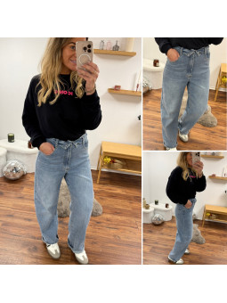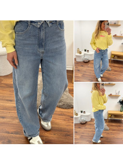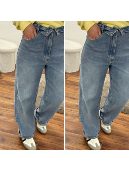 Jean ballon bleu clair avec ceinture en revers à la taille...