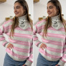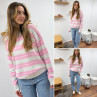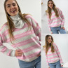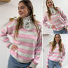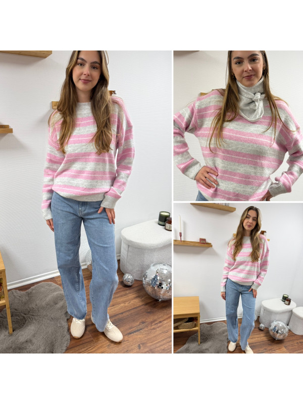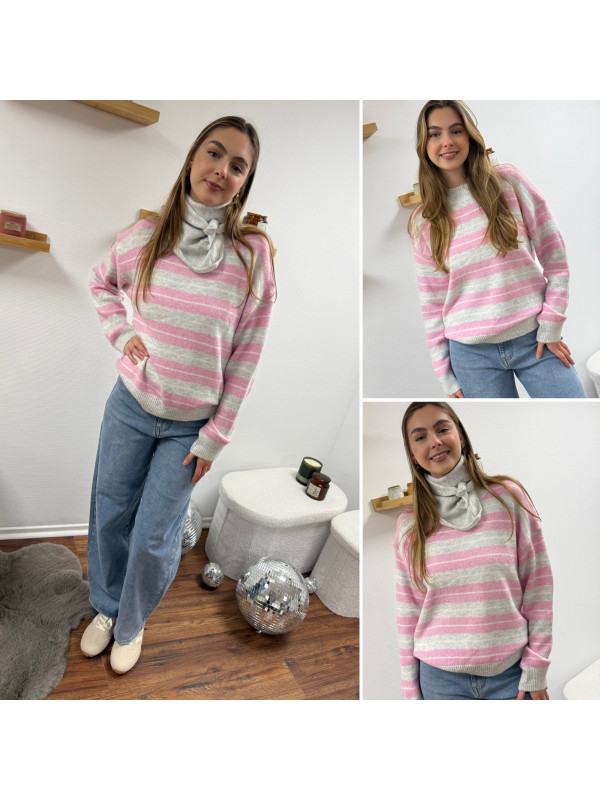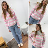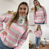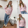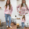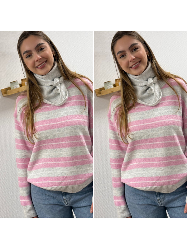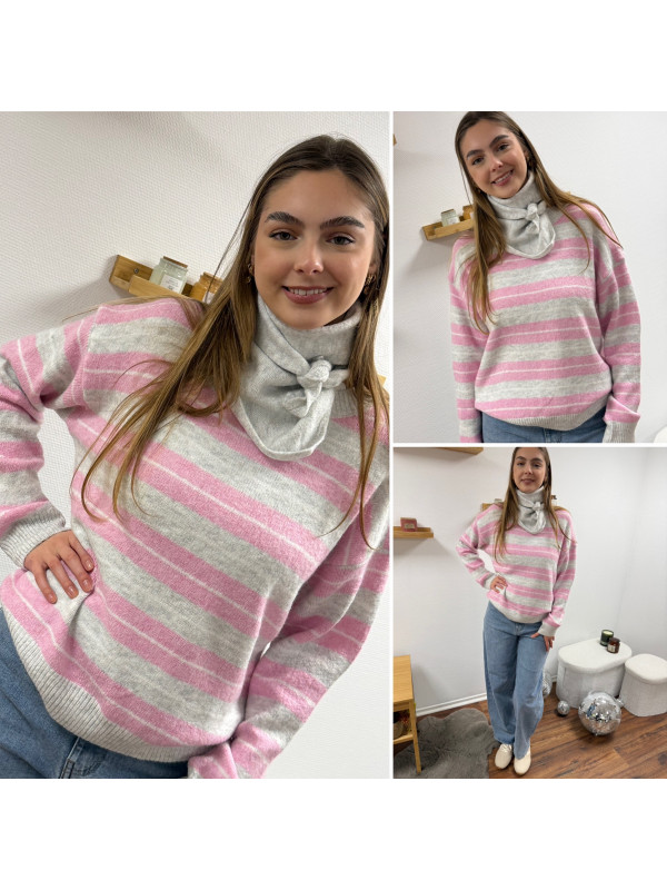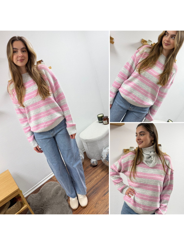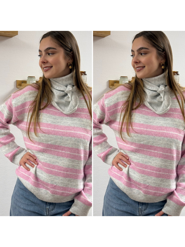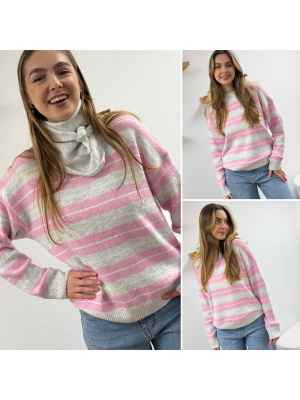 Pull à rayures roses, grises et blanches