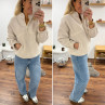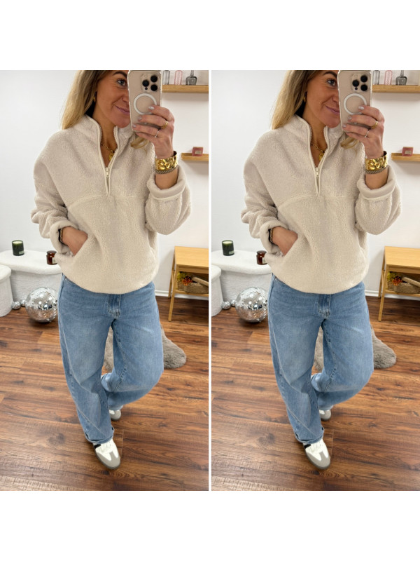 Pull col camioneur polaire à bouclettes écru avec poches