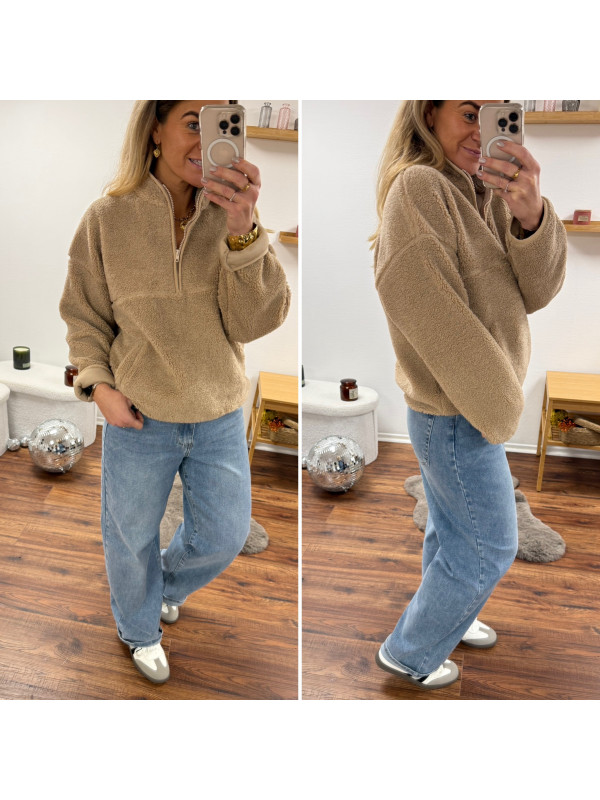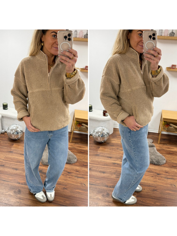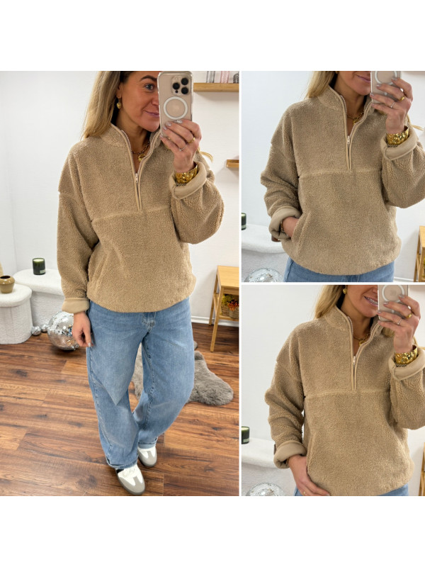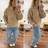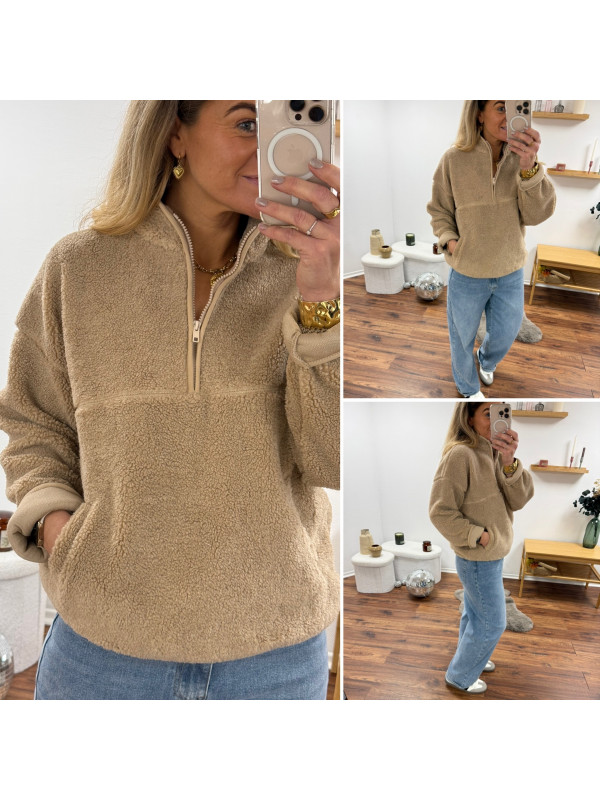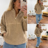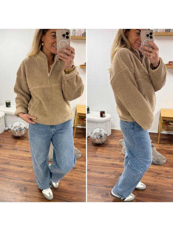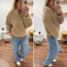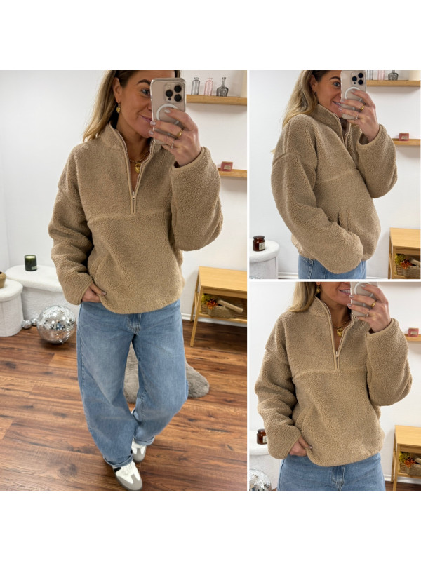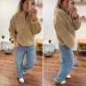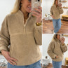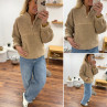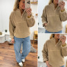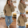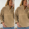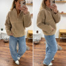 Pull col camioneur polaire à bouclettes taupe avec poches