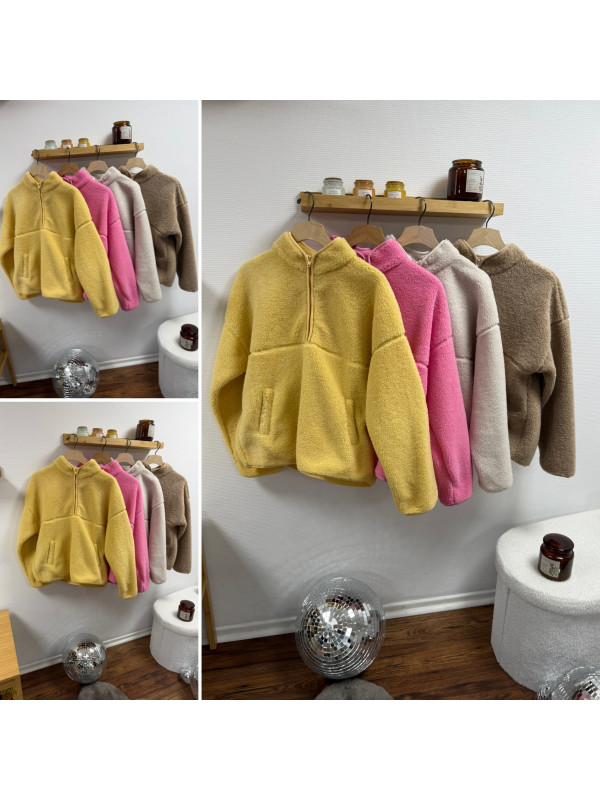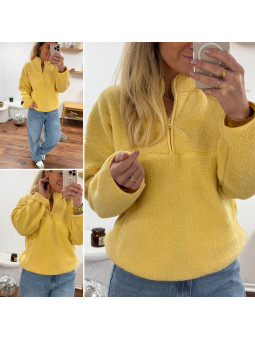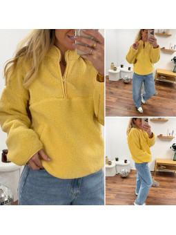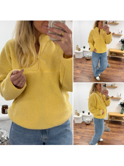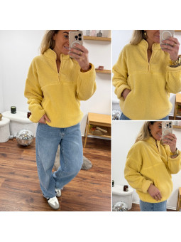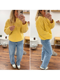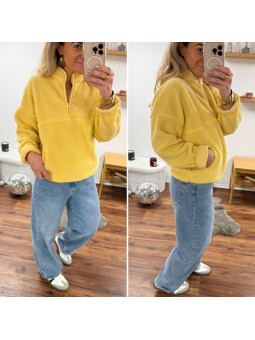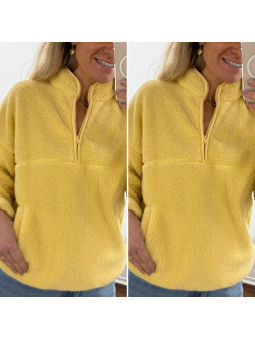 Pull col camioneur polaire à bouclettes jaune avec poches Le...