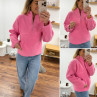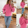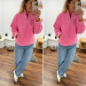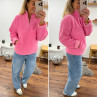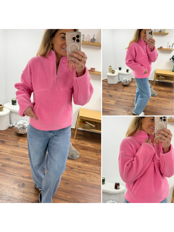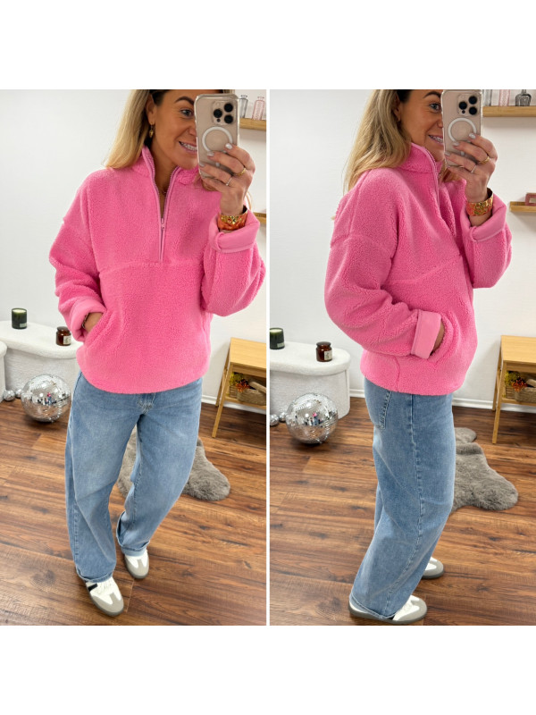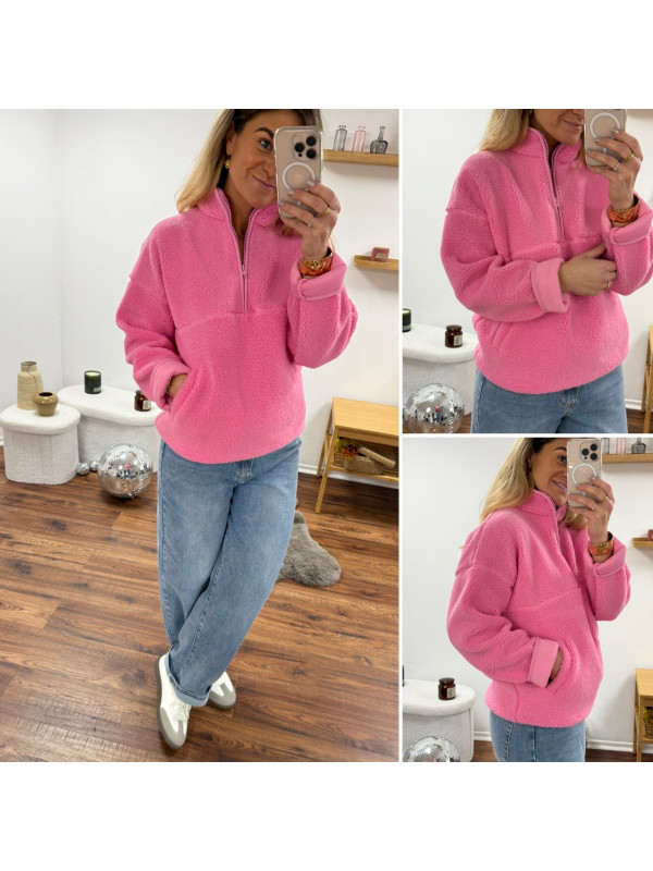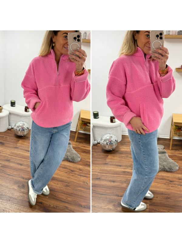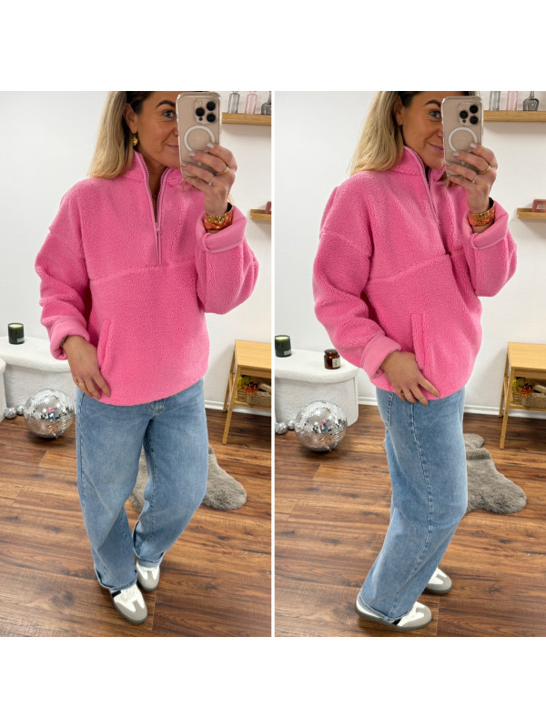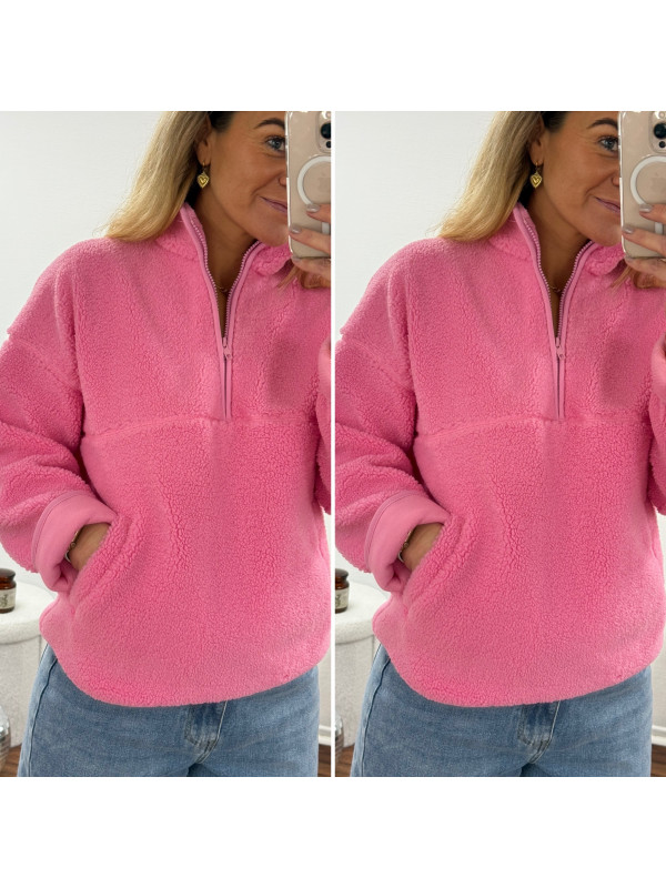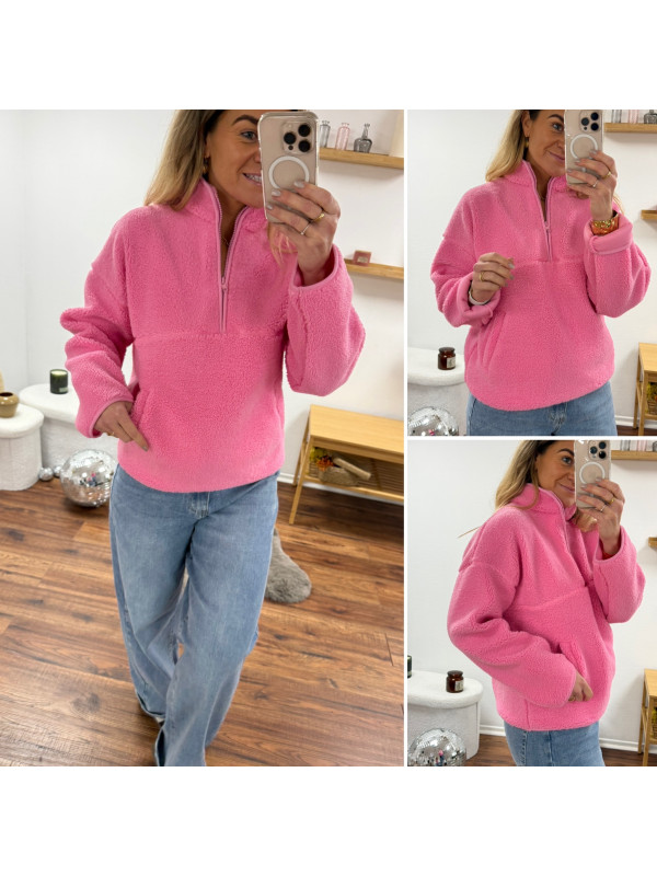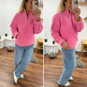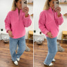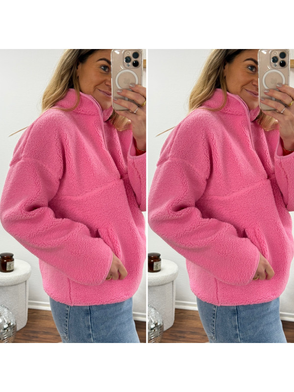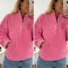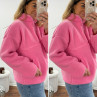 Pull col camioneur polaire à bouclettes rose avec poches