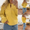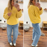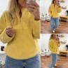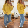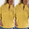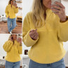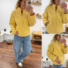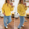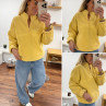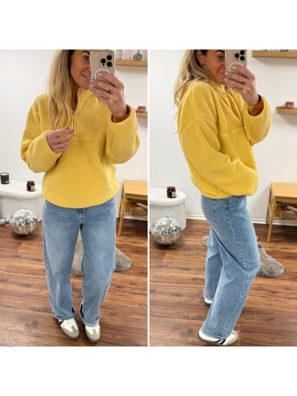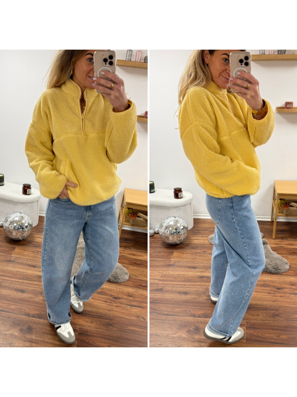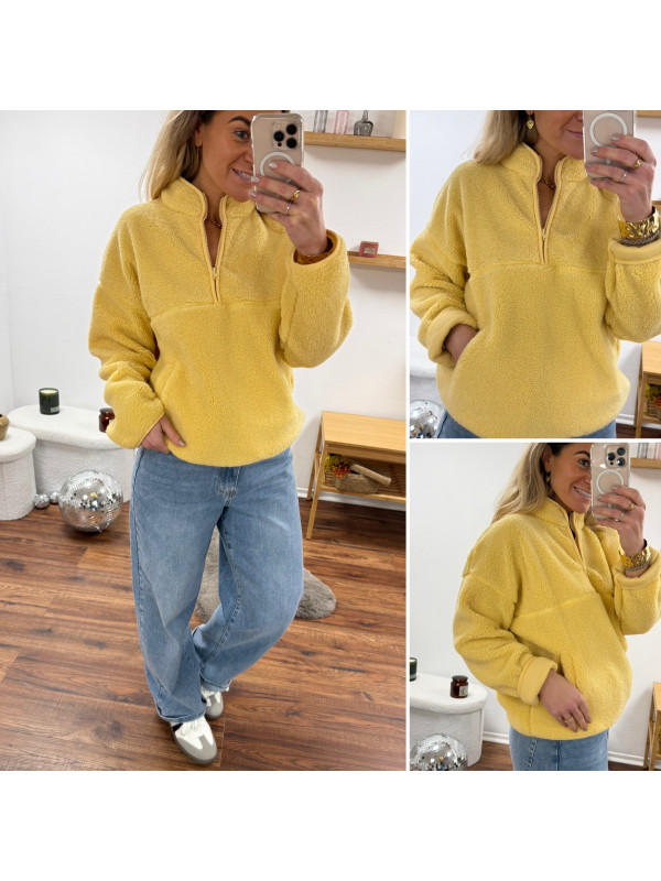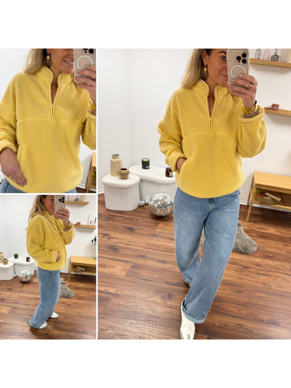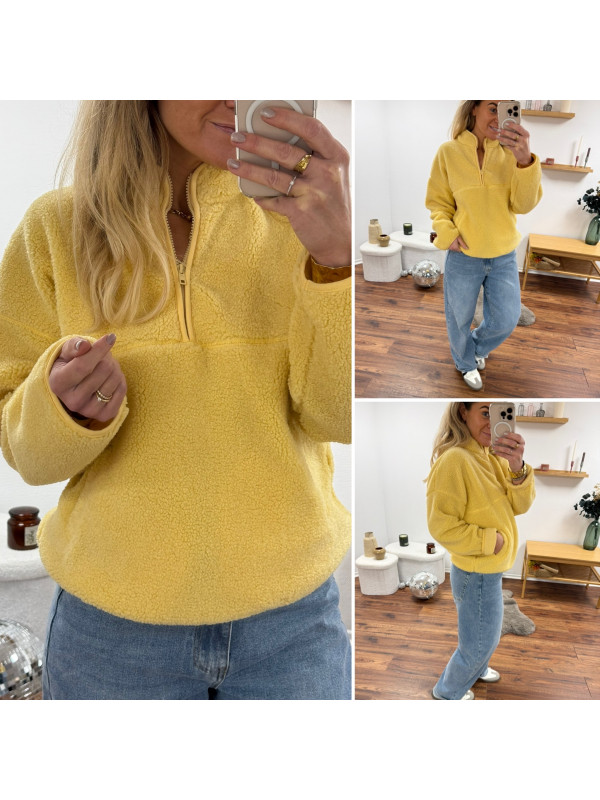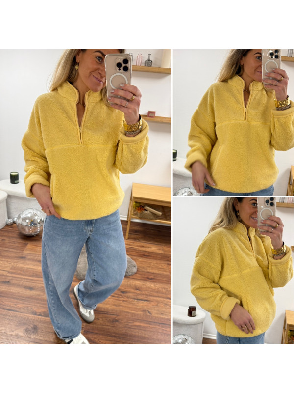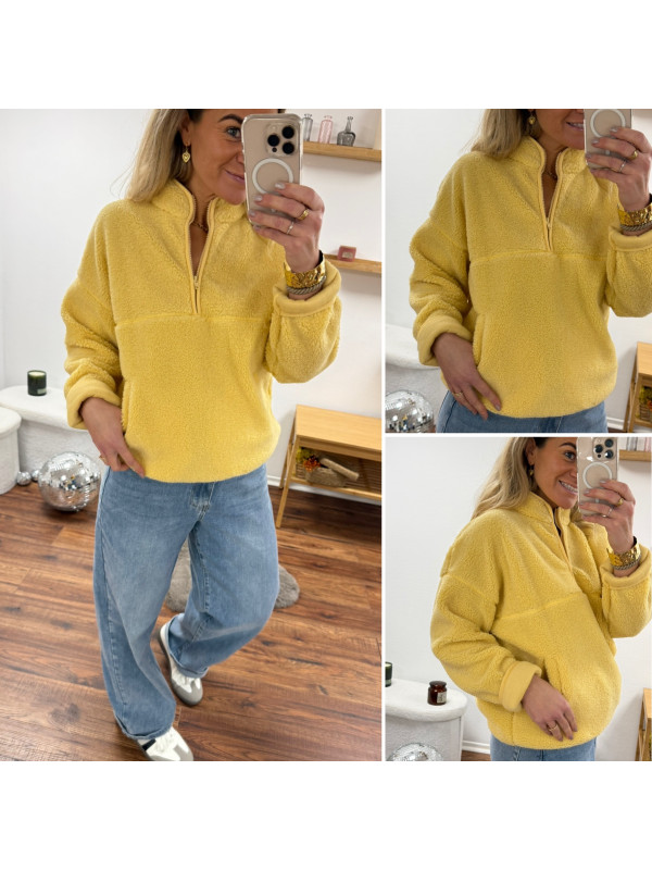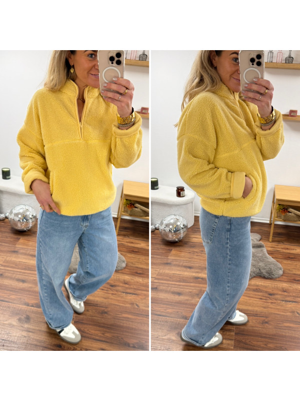 Pull col camioneur polaire à bouclettes jaune avec poches