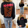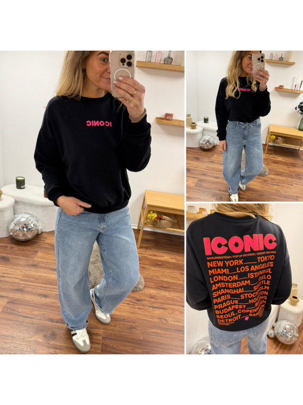 Sweat couleur bleu marine avec écritures iconic en rose fluo et orange