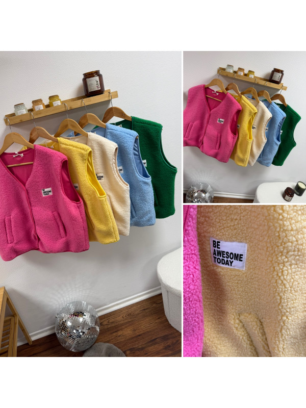 Gilet veste sans manches rose fuchsia avec logo "be awesome...