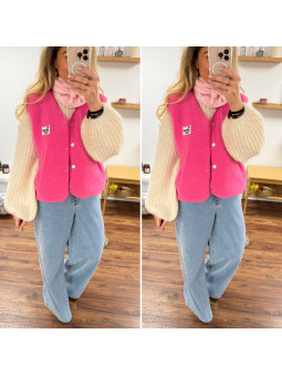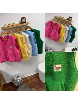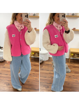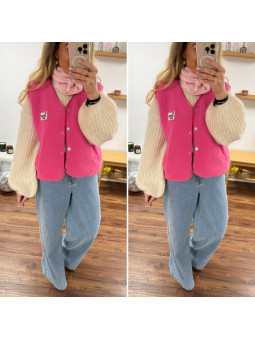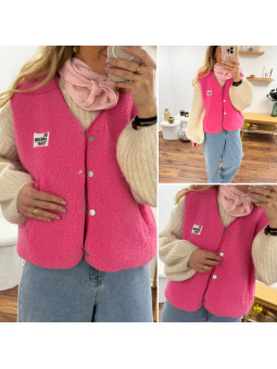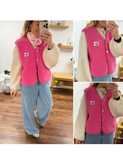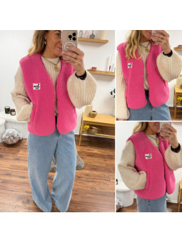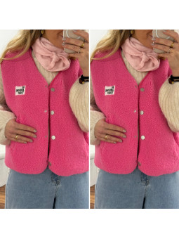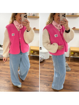 Gilet veste sans manches rose fuchsia avec logo "be awesome...