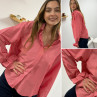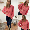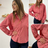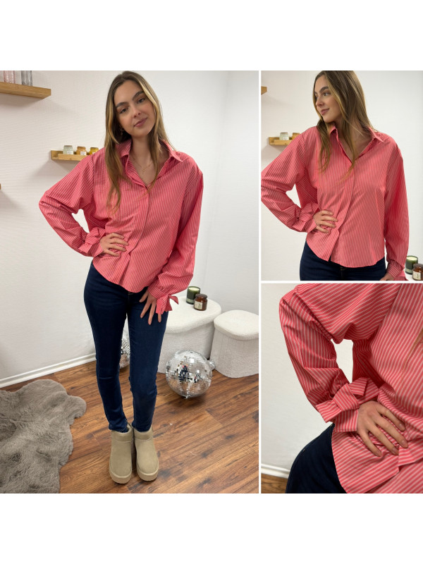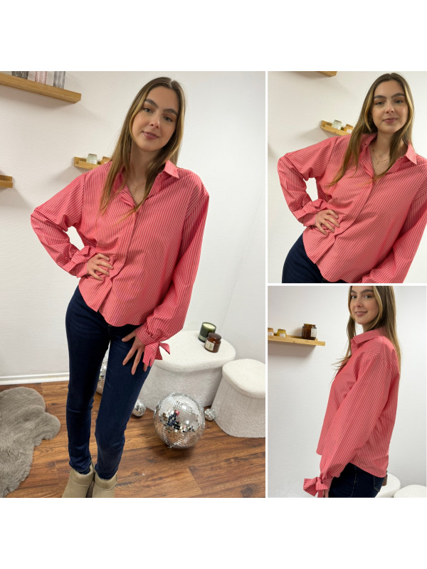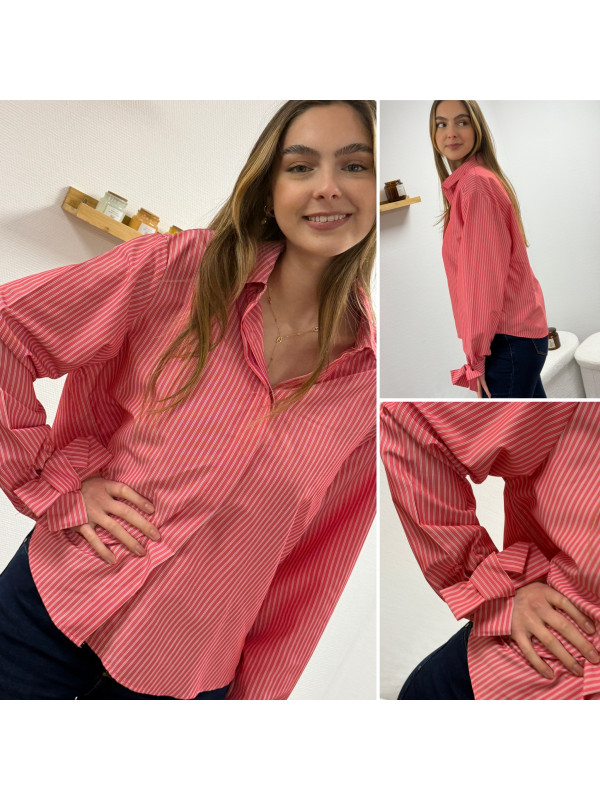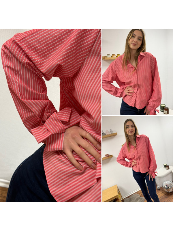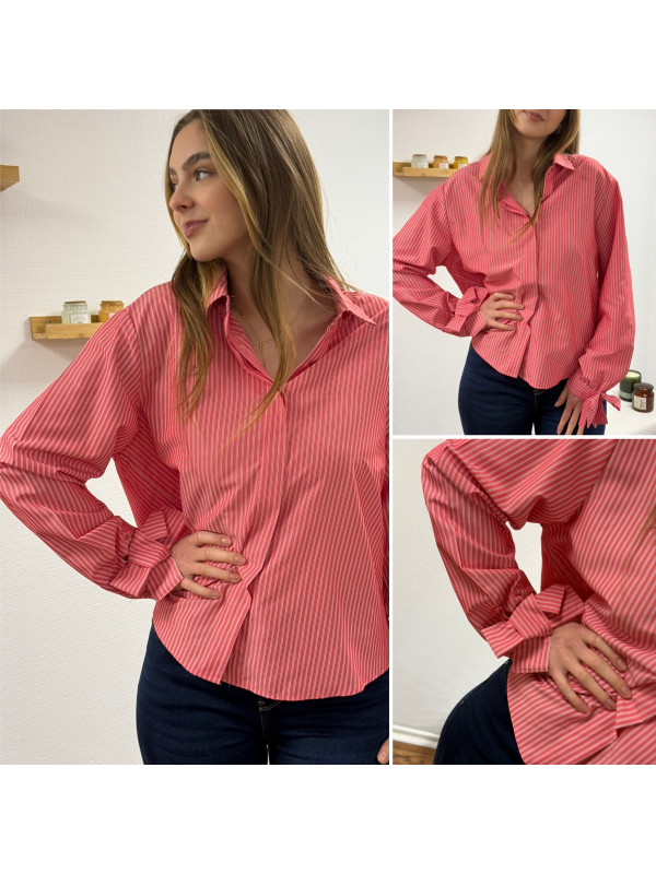 Chemise rose avec rayures blanches et noeud sur les poignets