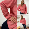 Chemise rouge avec rayures blanches et noeud sur les poignets