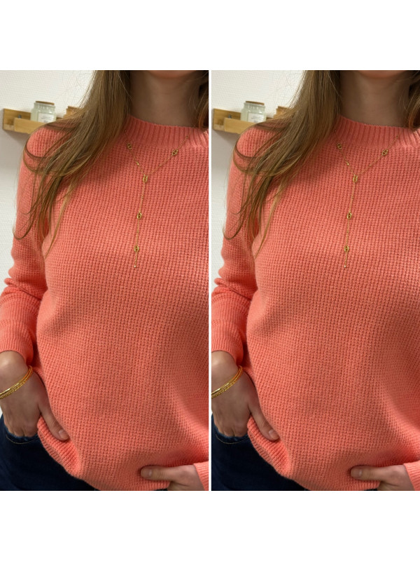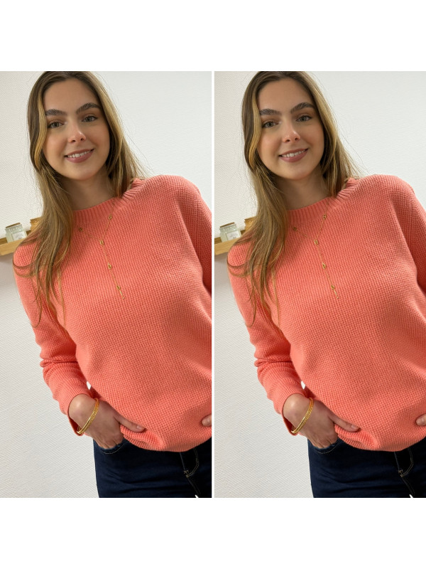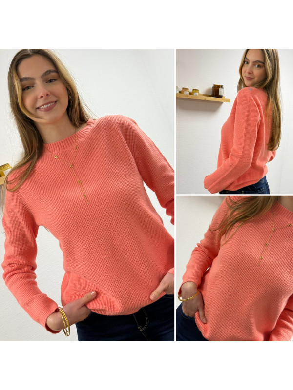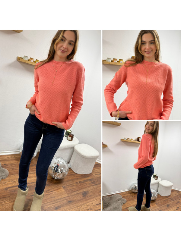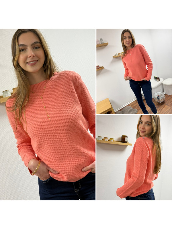 Pull corail avec boutons sur l'épaule et maille nid d'abeille (du 36 au 46)