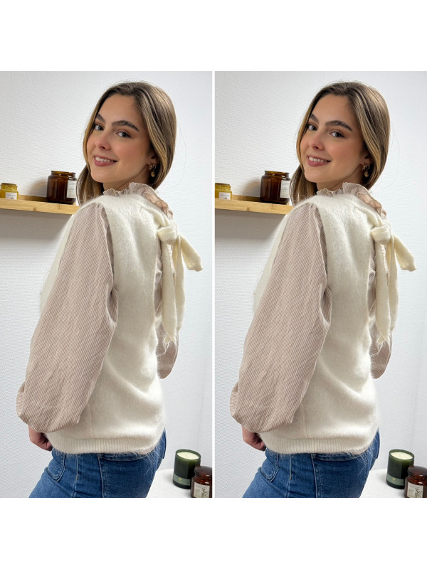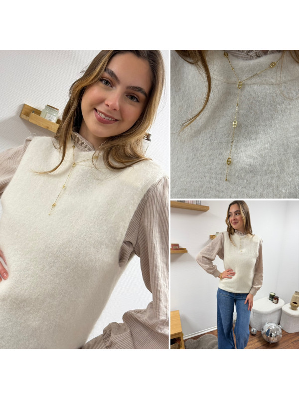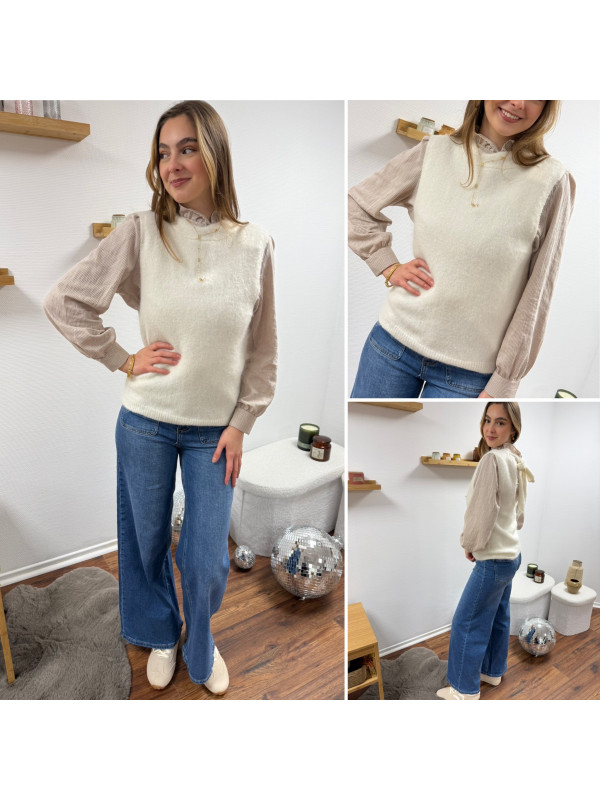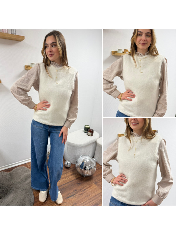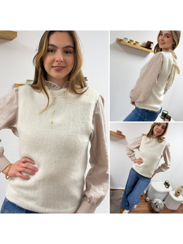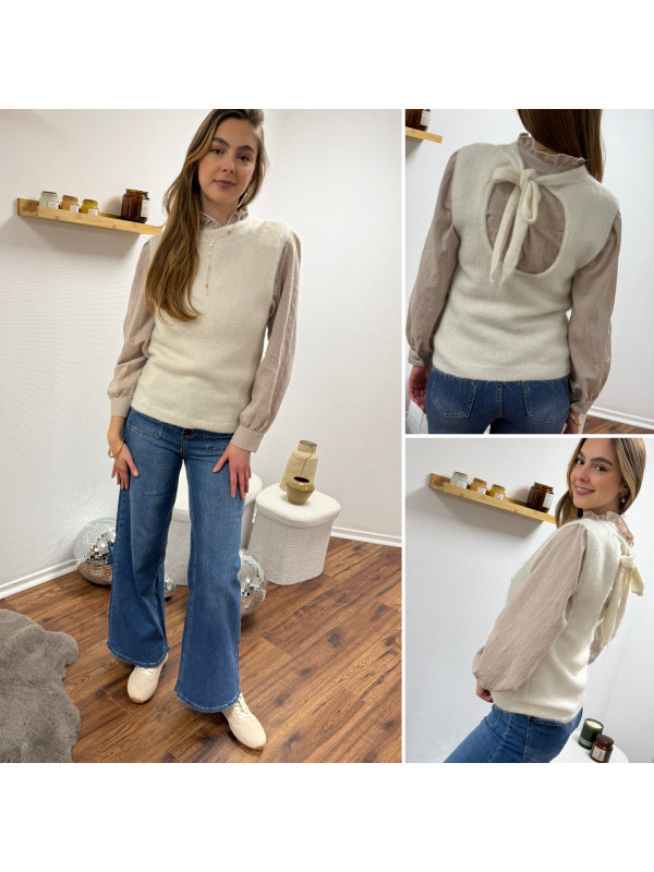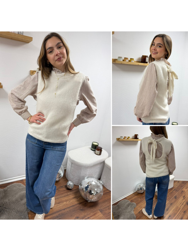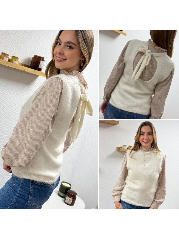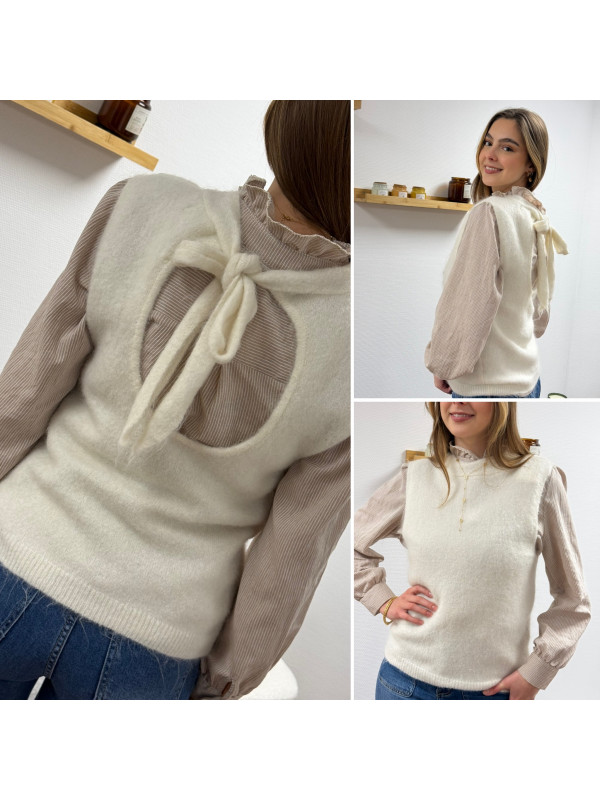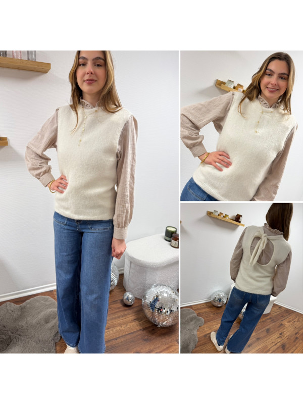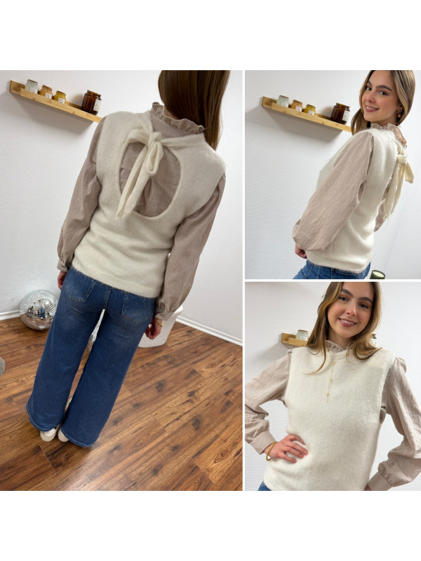 Pull sans manches blanc avec ouverture dans le dos fermé par un noeud
