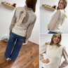 Chemise à rayures blanches et beiges avec volant sur le col et...