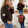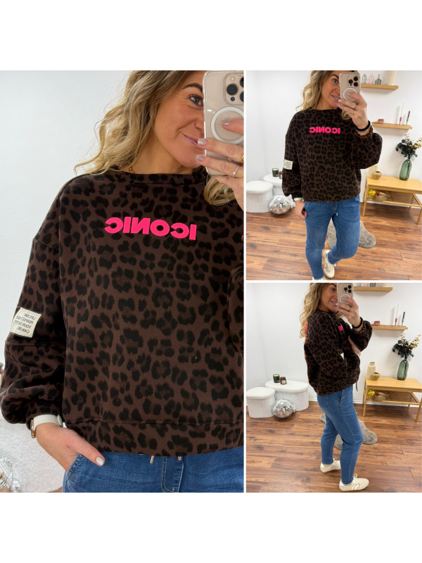 Sweat léopard chocolat "iconic" avec flap sur le bras "life isn't perfect but your outfit can be"