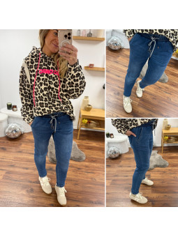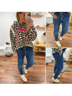 Sweat léopard chocolat à capuche avec logo "iconic" et écriture dos