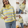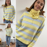 Pull beige clair chiné col rond en grosses mailles avec...