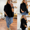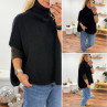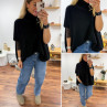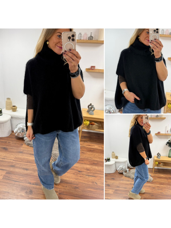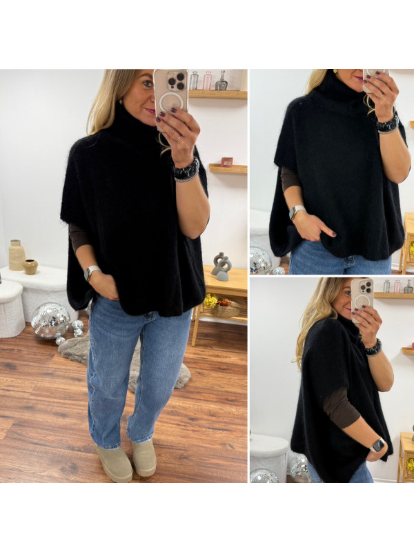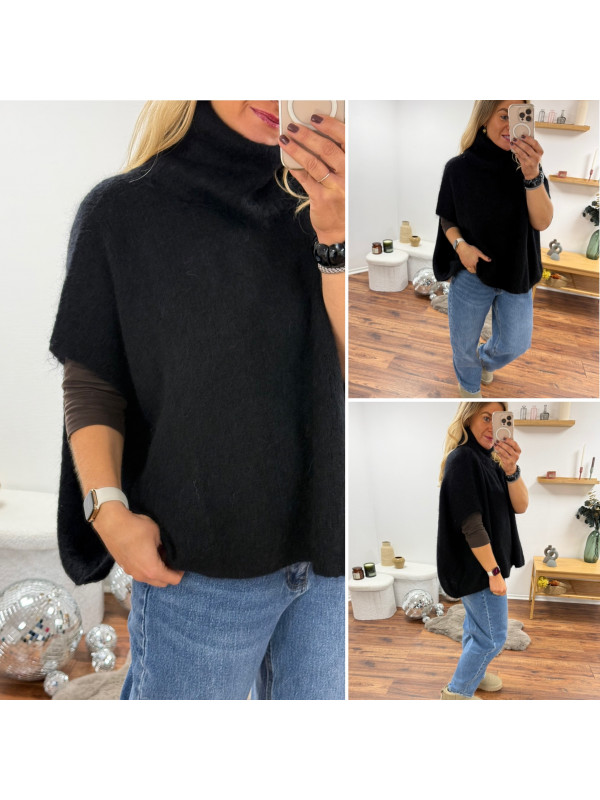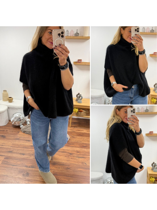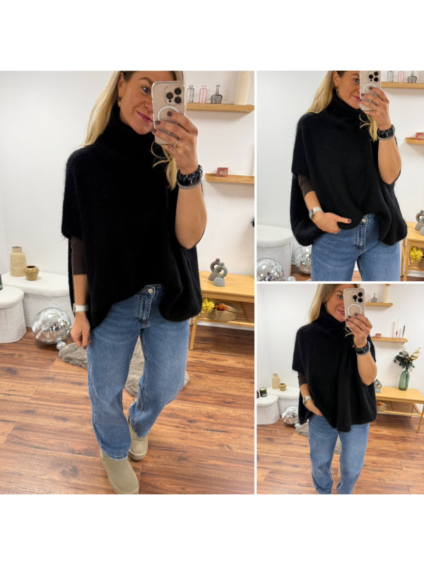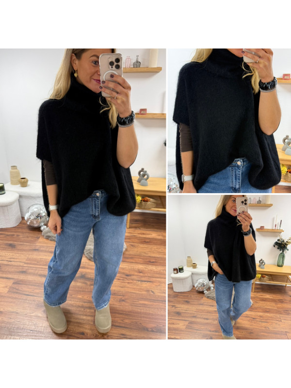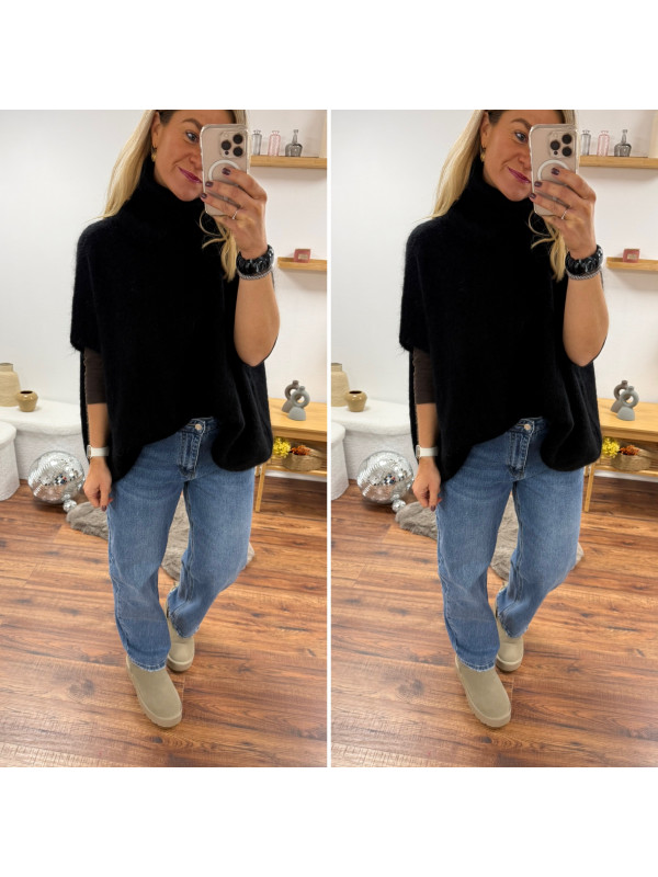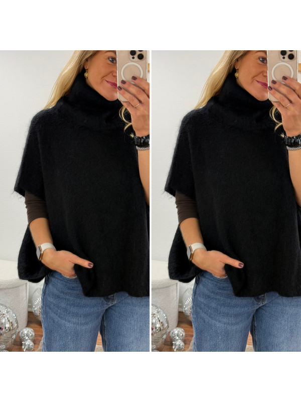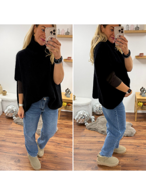 Pull col roulé noir oversize en mohair manches courtes