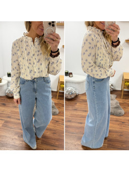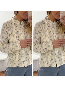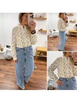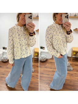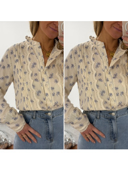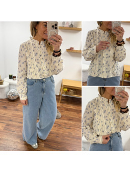 Chemise écrue avec fleurs...