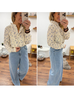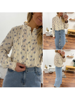 Chemise écrue avec fleurs bleues et broderies sur le devant Le...