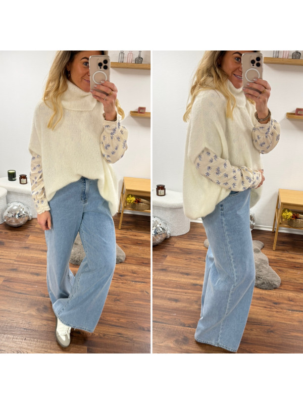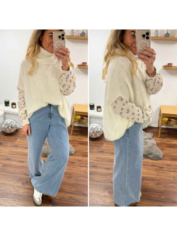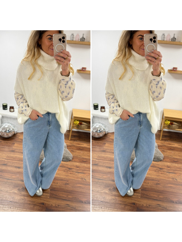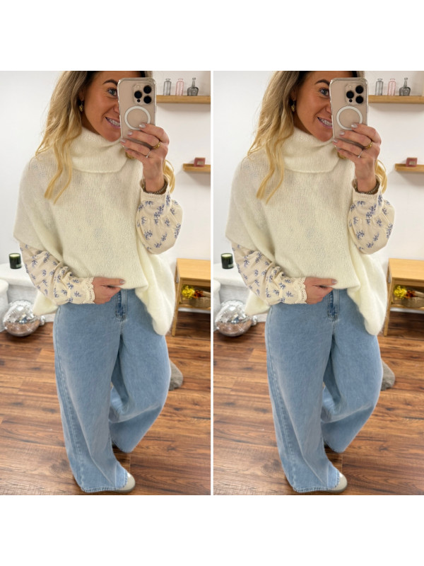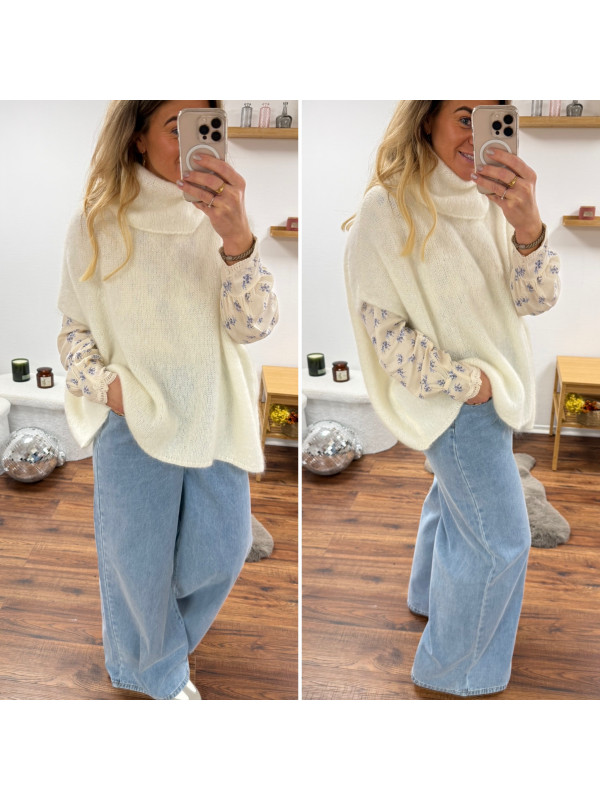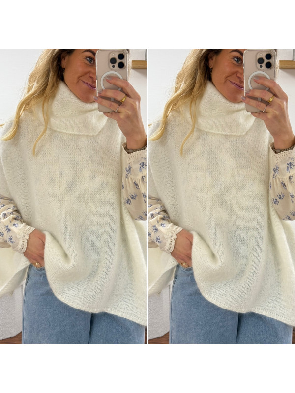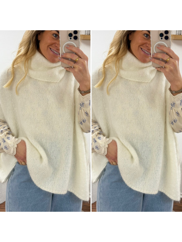 Pull blanc col roulé oversize manches courtes en mohair