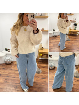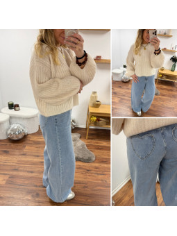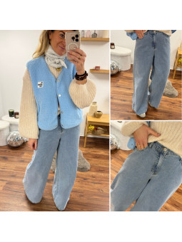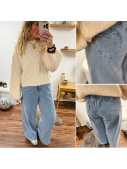 Jean wide leg large avec taille élastiquée et poches coeur à...