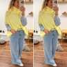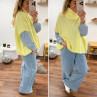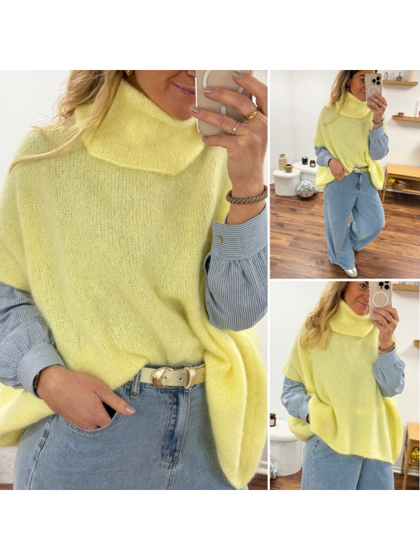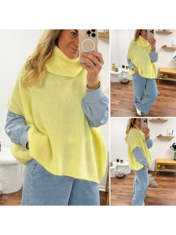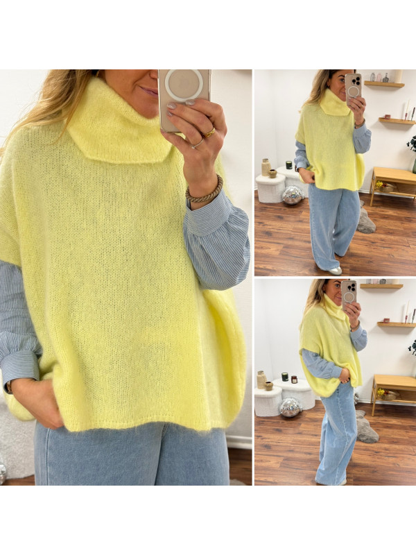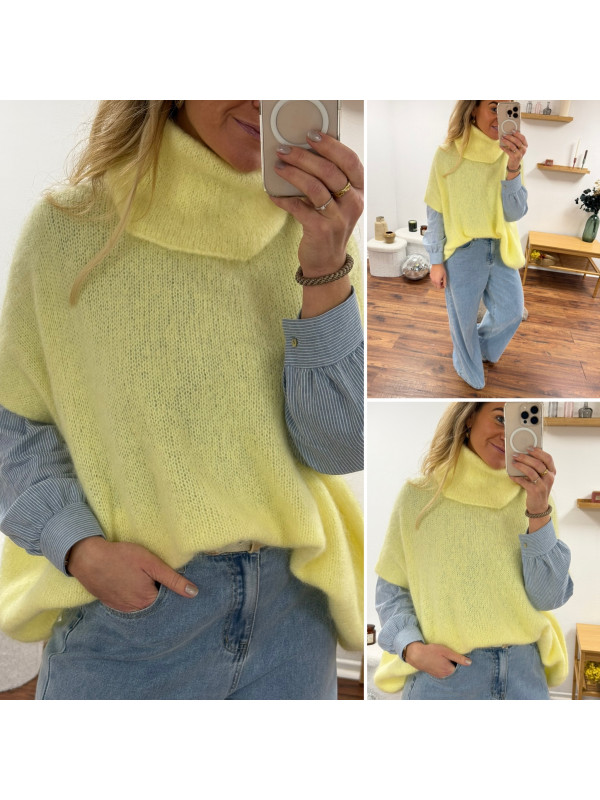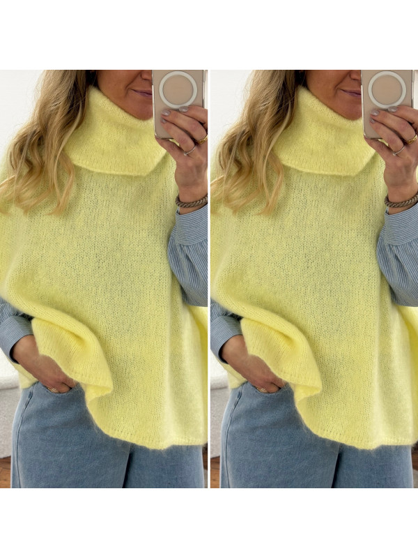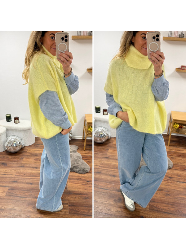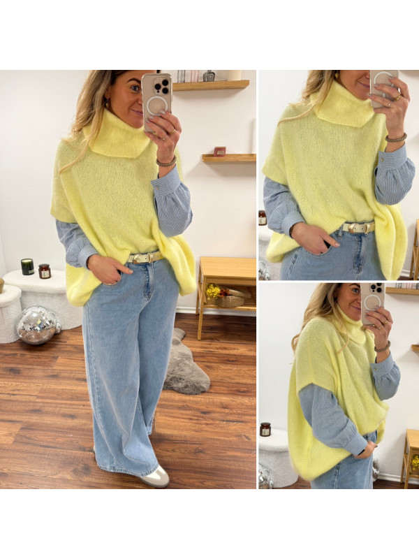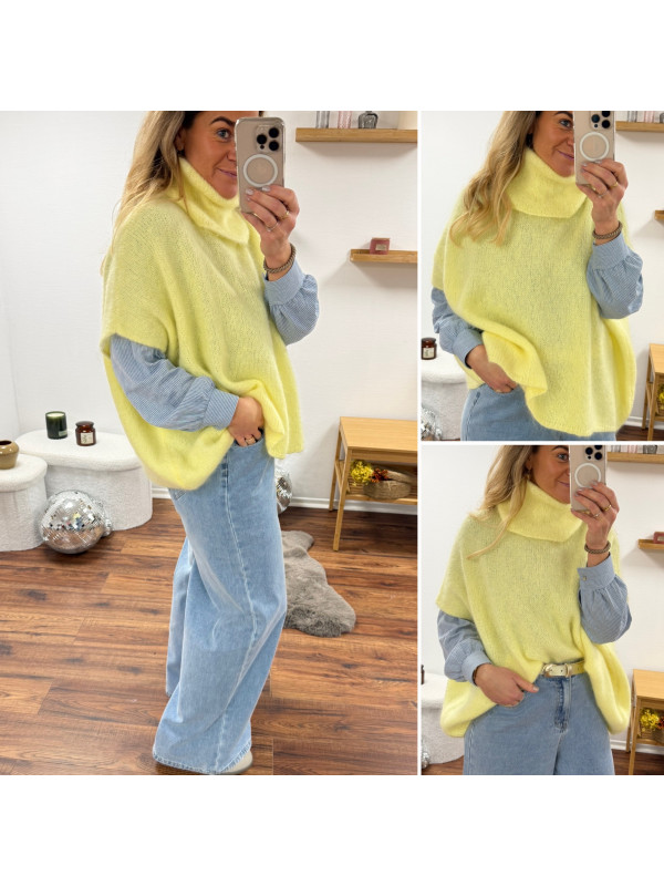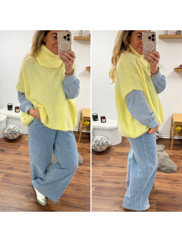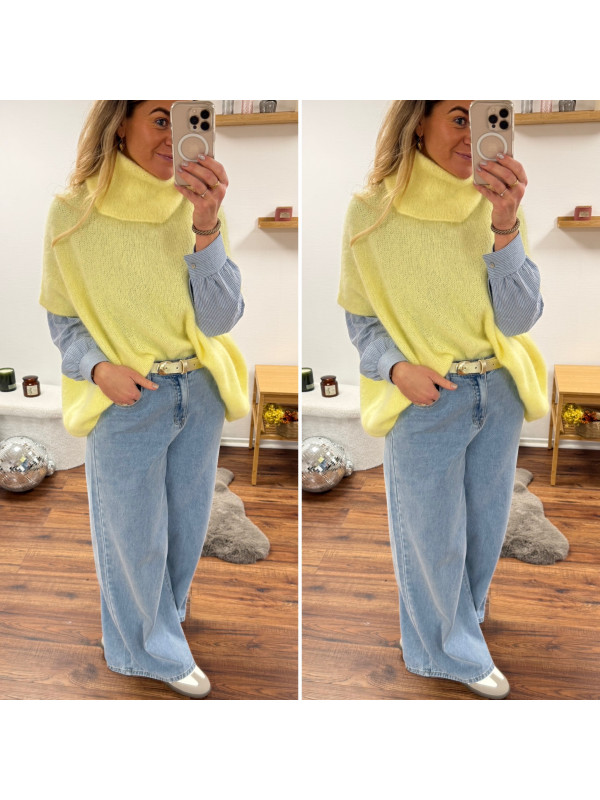 Pull jaune col roulé oversize manches courtes en mohair