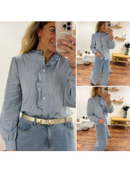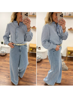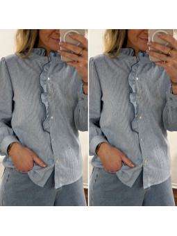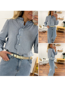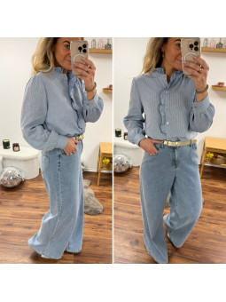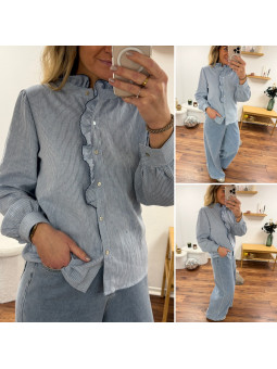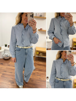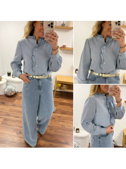 Chemise à rayures blanches et bleues avec volant sur le col et...