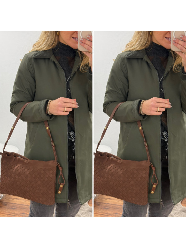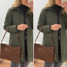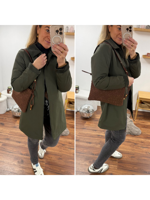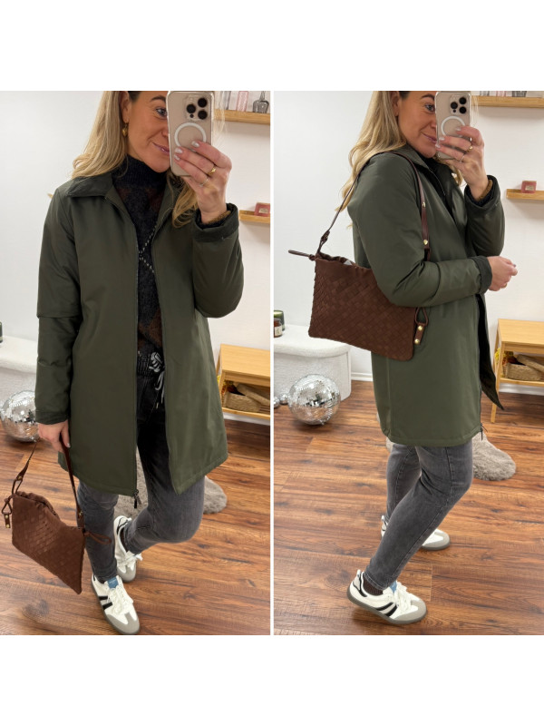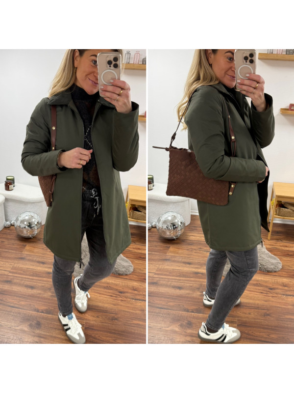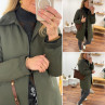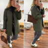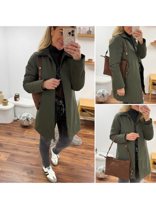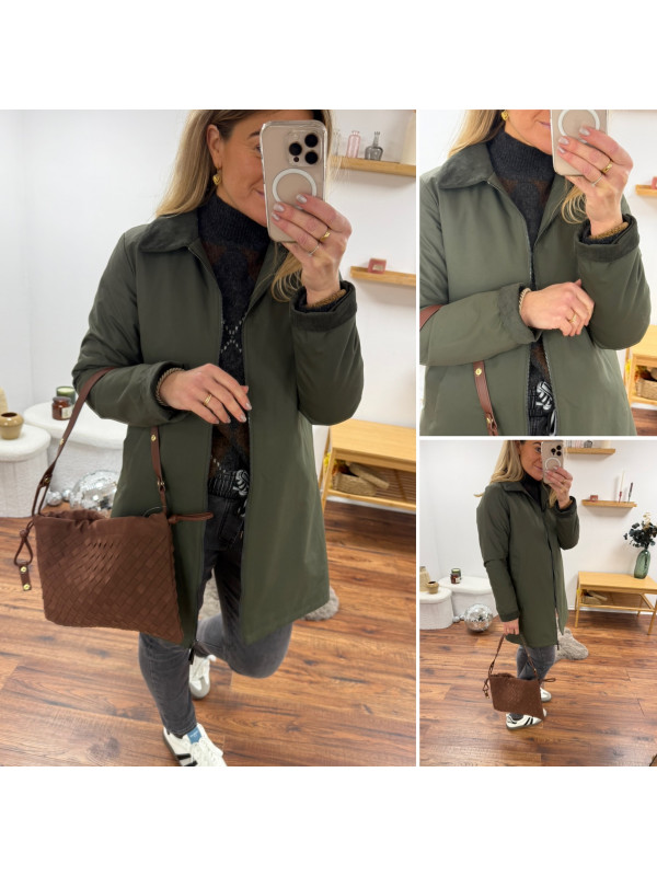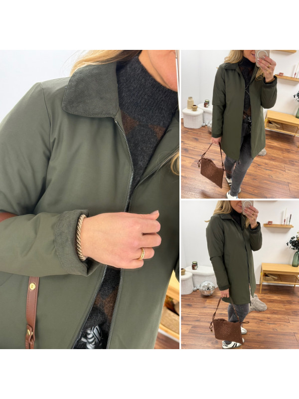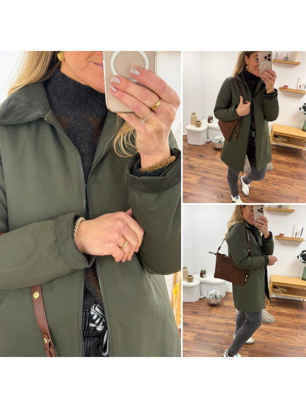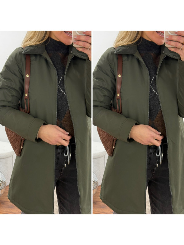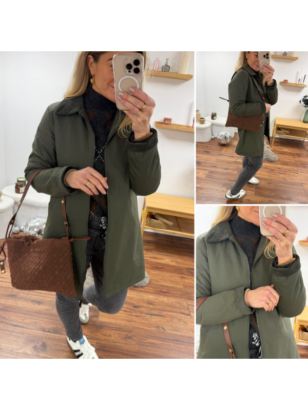 Trench parka kaki imperméable mi long avec col et poignets en velours