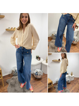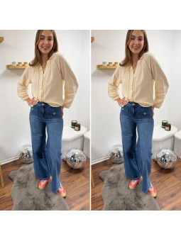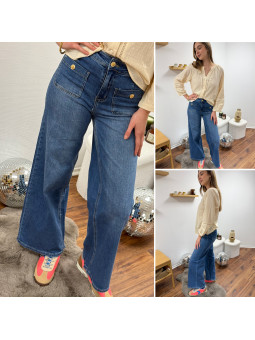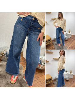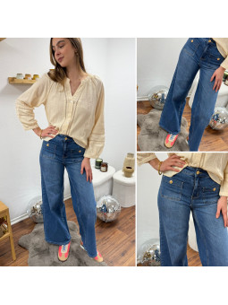 Jean wide leg avec poches plaquées sur le devant et boutons...