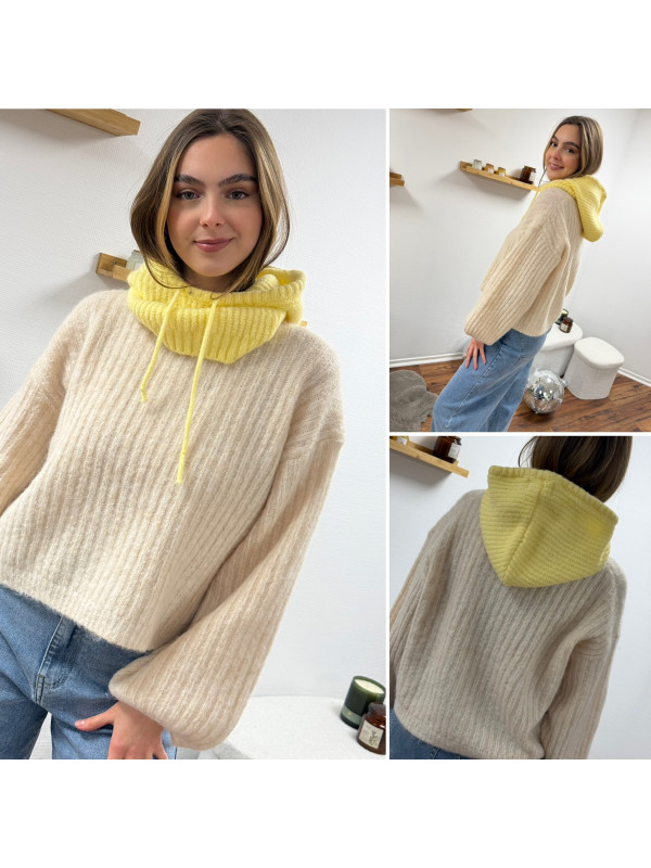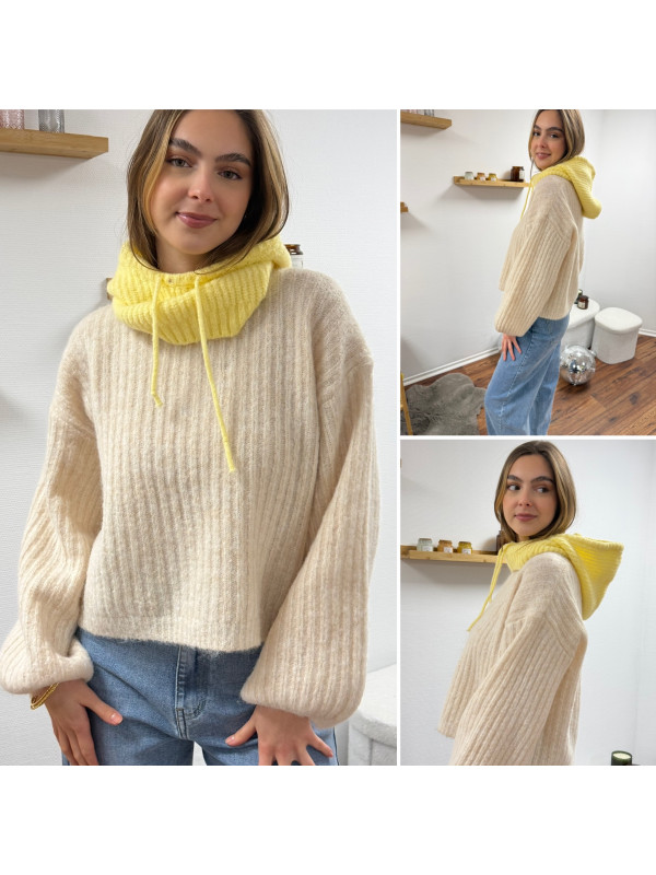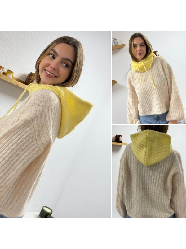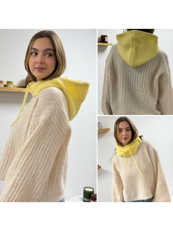 Cagoule en maille jaune pâle