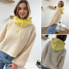 Pull beige clair chiné col rond en grosses mailles avec...