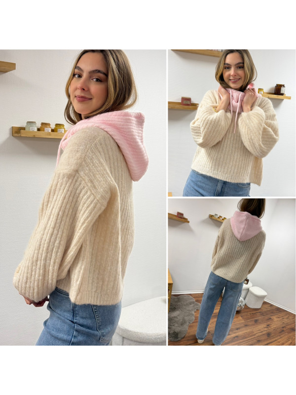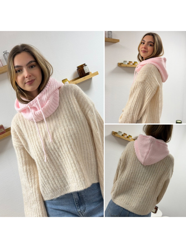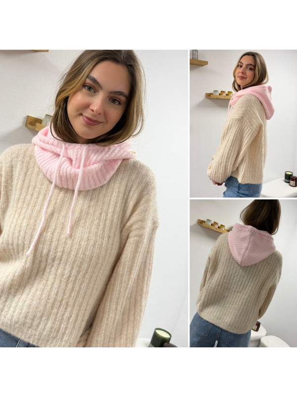 Cagoule en maille rose pâle